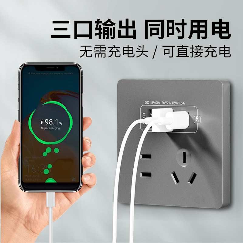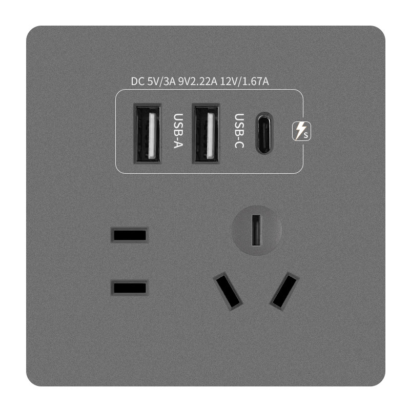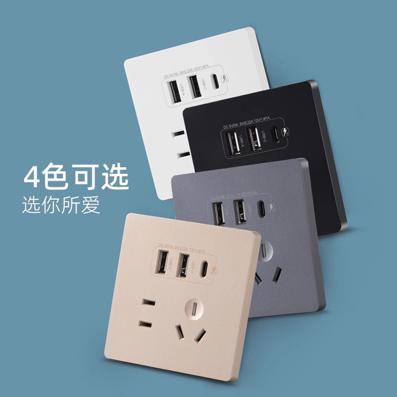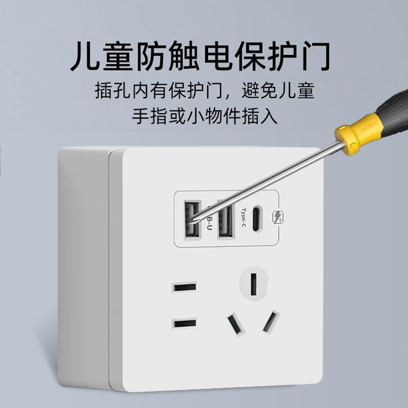 86型二位双USB+Type-C快充插座面板20W明装五孔快充手机充电插头
