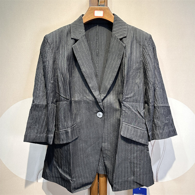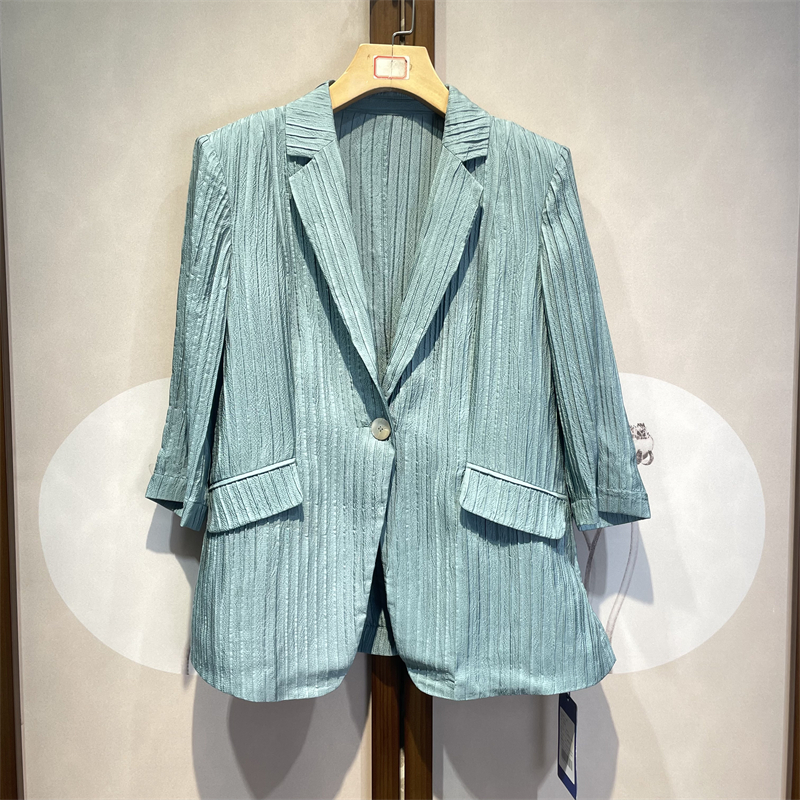 真丝揉叠绉纯色西装领九分袖一粒扣式百搭桑蚕丝西装外套23-3-4