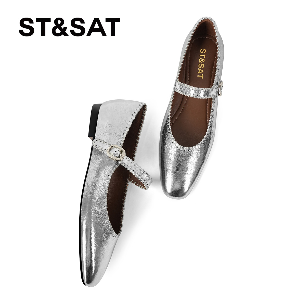 星期六红色单鞋女2025粗跟平底浅口复古软底不累脚玛丽珍芭蕾舞鞋