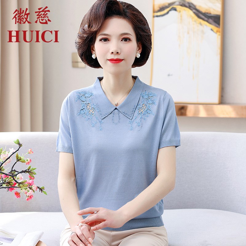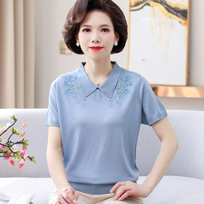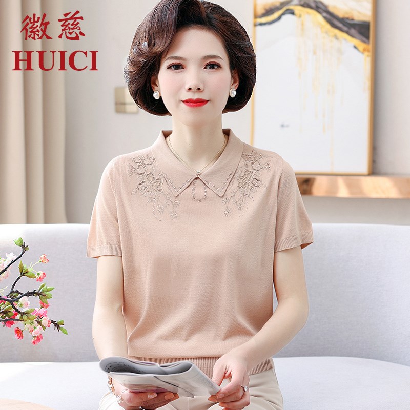 中年妈妈装夏款短袖T恤洋气夏装2024新款中老年人女装薄上衣服装