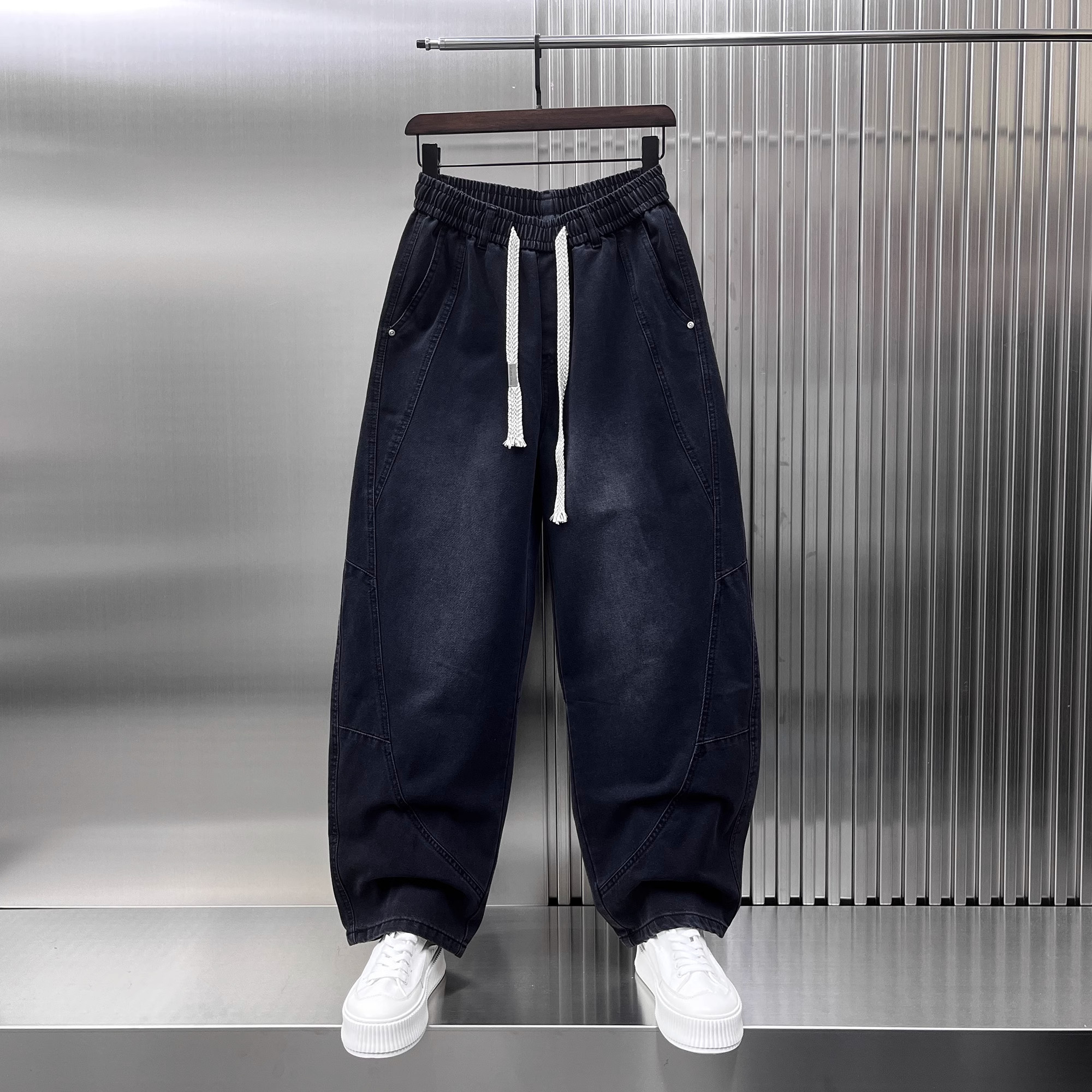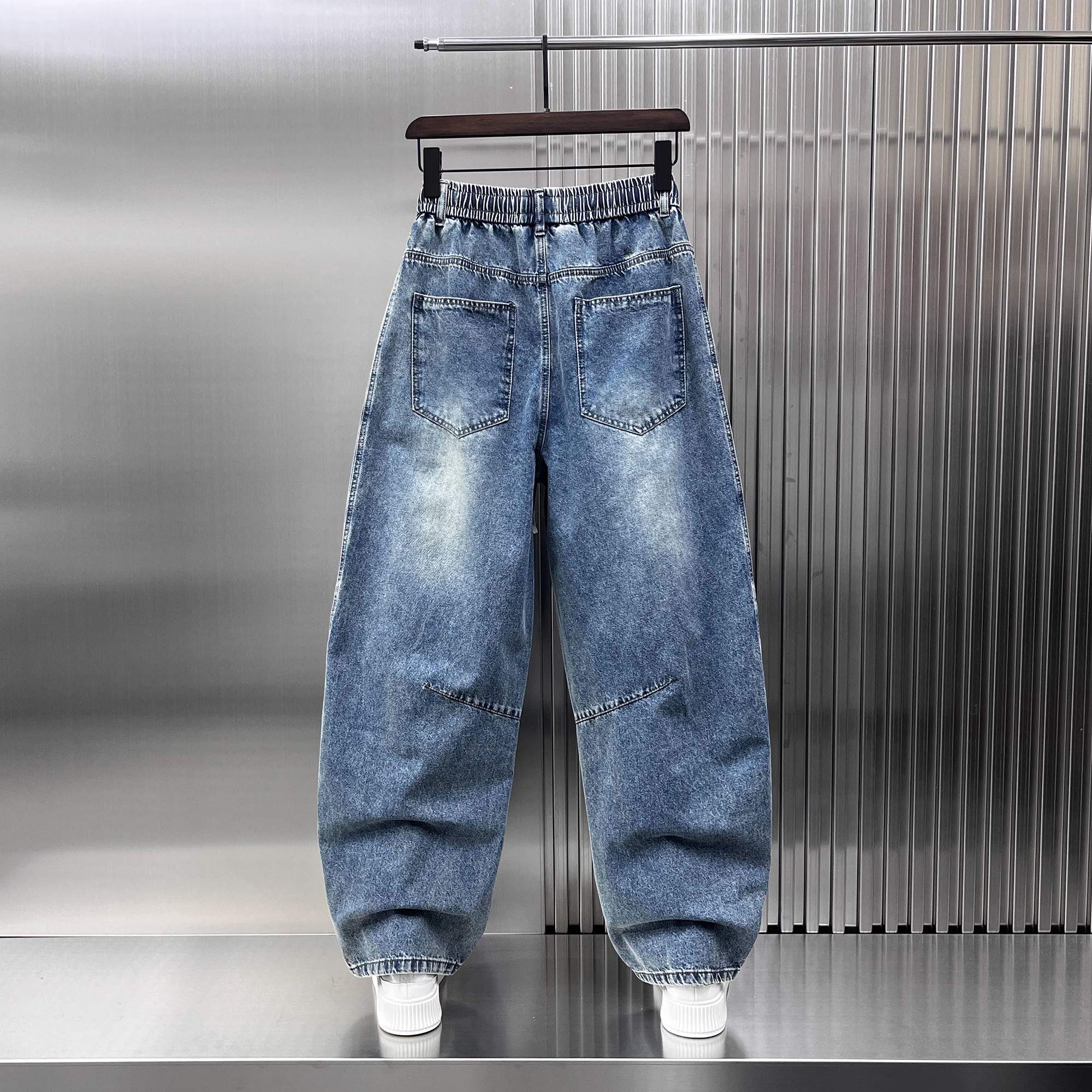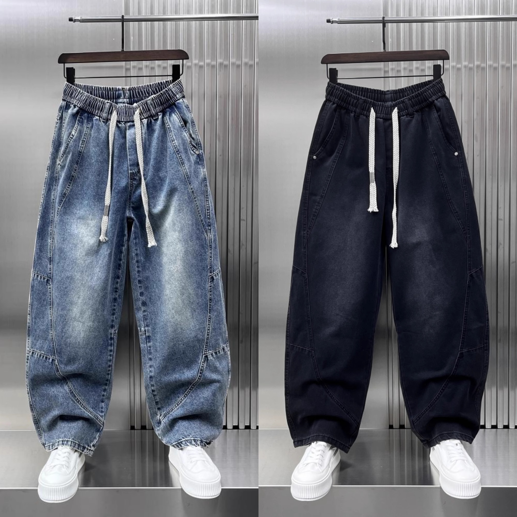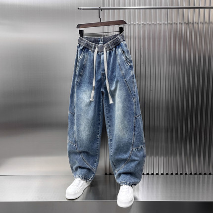 特大码300斤潮牌高街痞帅水洗弯刀牛仔裤男士夏季韩版阔腿拖地裤2