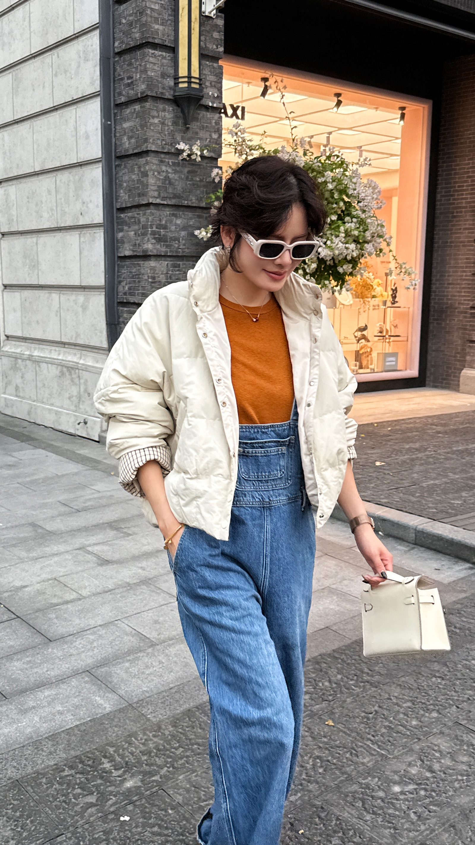 2025冬季新款羽绒服女短款立领纯色加厚宽松白鸭绒小个子外套
