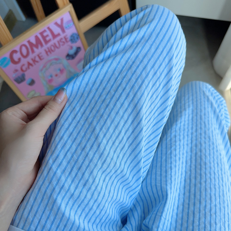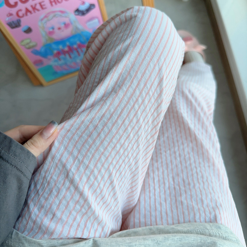 有口袋可外穿 ins韩风博主条纹休闲居家睡裤女两色宽松家居长裤