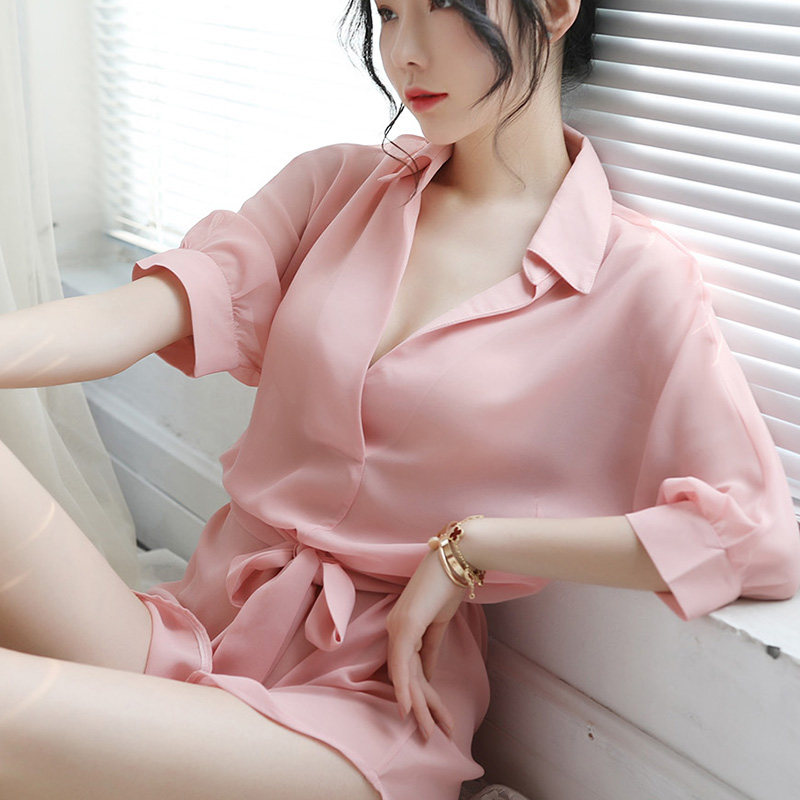 性感长款衬衫内衣女款蕾丝吊带睡衣夏季纯欲睡袍火辣暗示秘书制服
