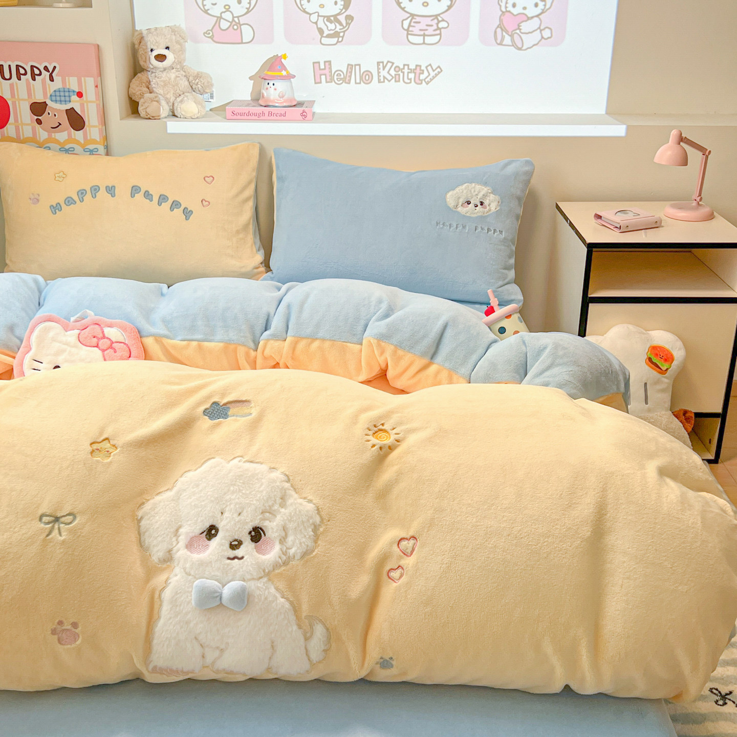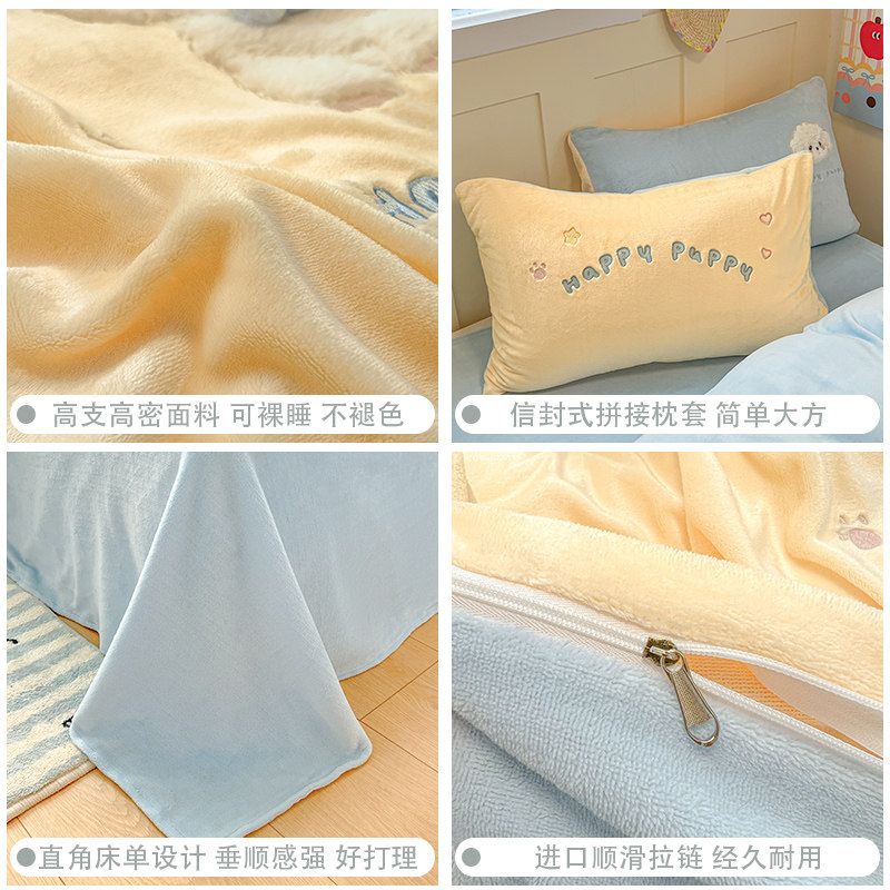 可爱狗狗牛奶绒床上四件套A类冬季加厚珊瑚绒被套床单少女三件套4