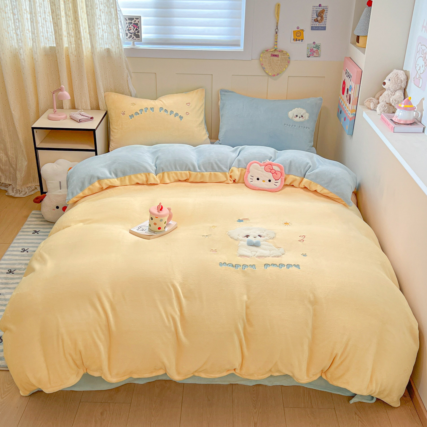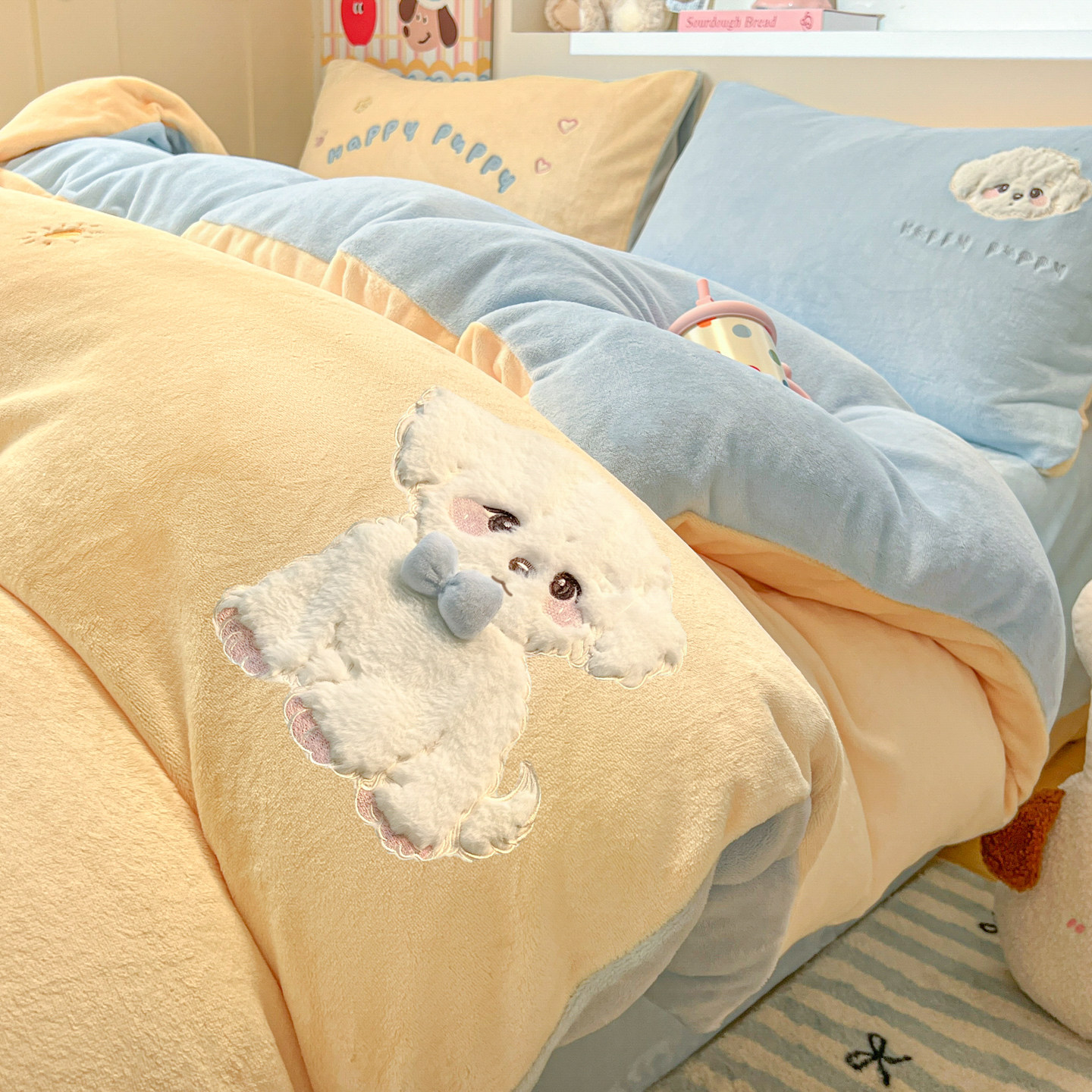 糯叽叽~可爱贴布绣牛奶绒四件套