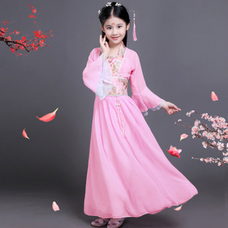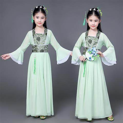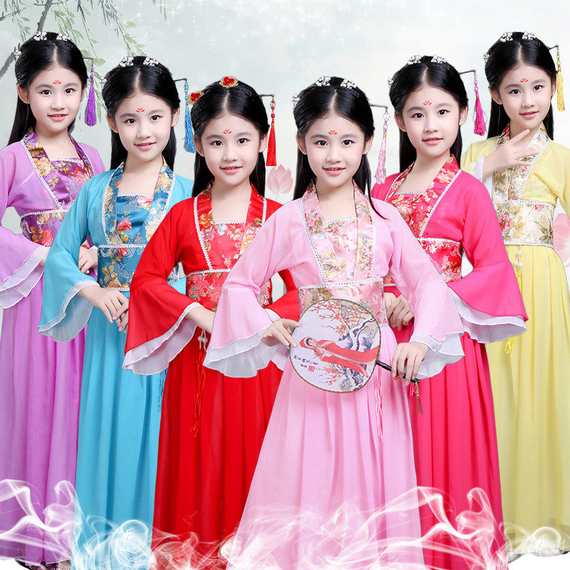 儿童古装汉服 女童民族风舞蹈演出服装 大童中国风仙女裙小孩衣