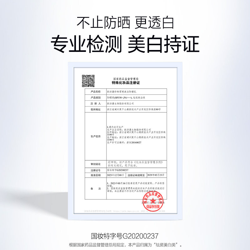 欧诗漫防晒霜珍珠零感美白女清爽不油腻防紫外线官方正品军训专用