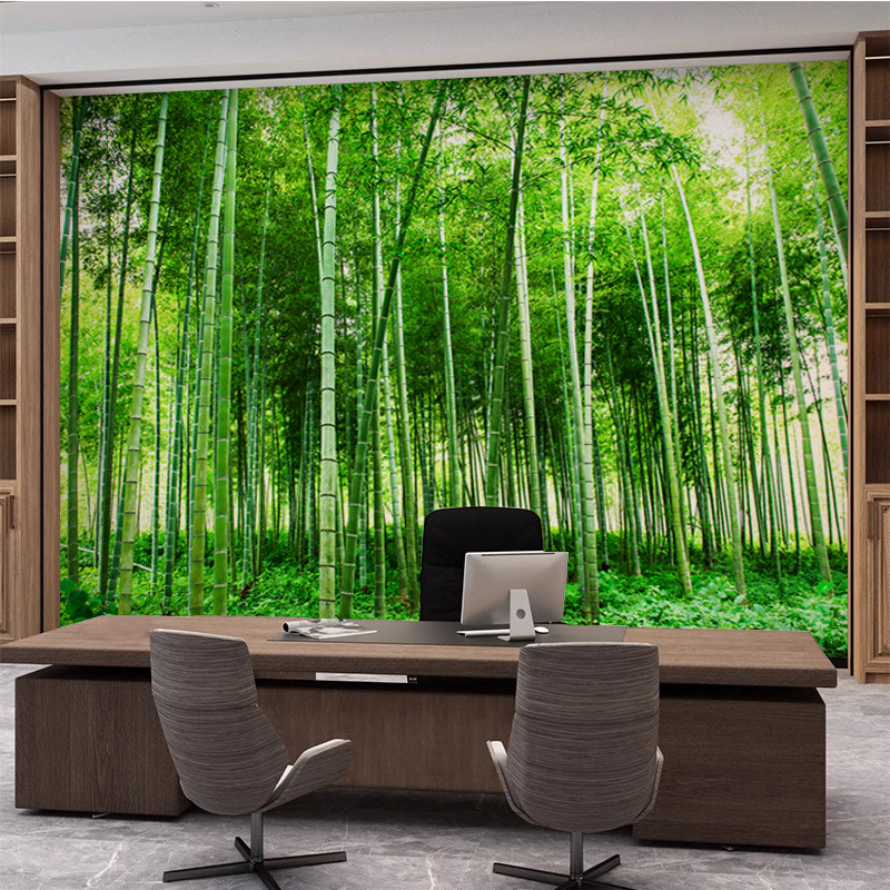 竹林大自然森林背景墙壁纸民宿客厅服装店直播间壁画竹子防潮墙布