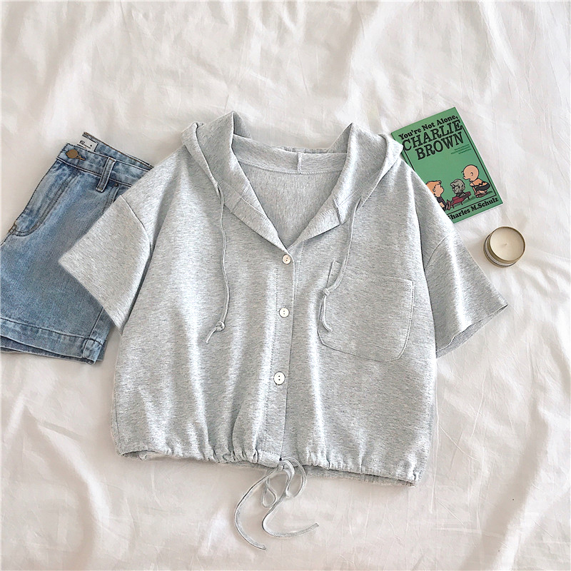 连帽短袖t恤女2025夏季新款宽松韩版潮学生半袖短款开衫上衣服ins