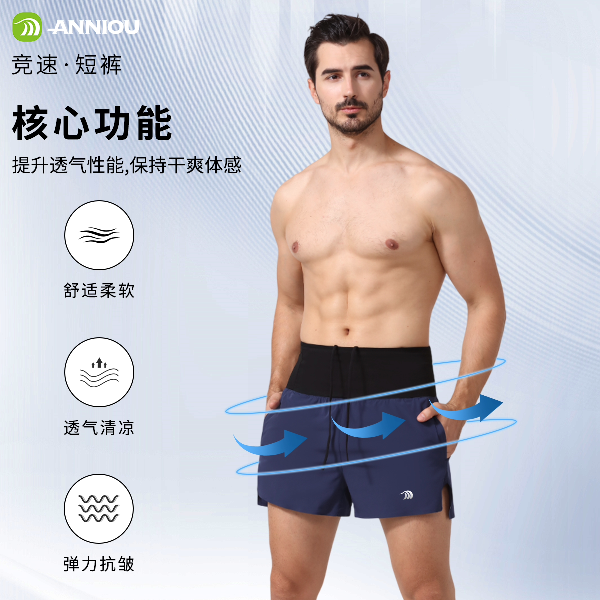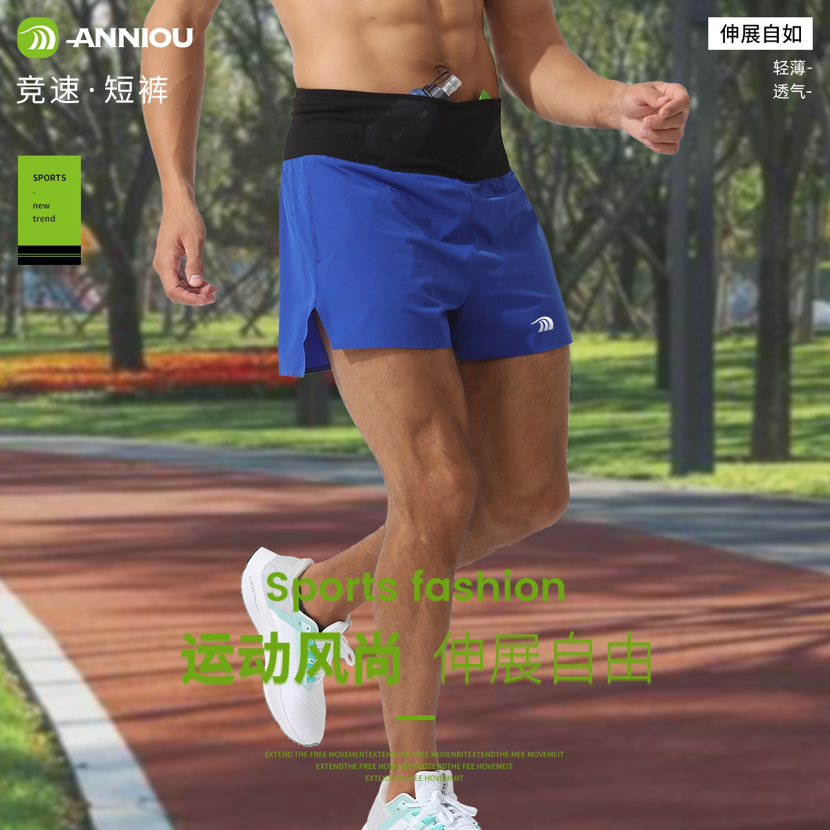 安尼欧越野跑运动短裤男高腰封胶竞速健身短裤马拉松跑步速干短裤