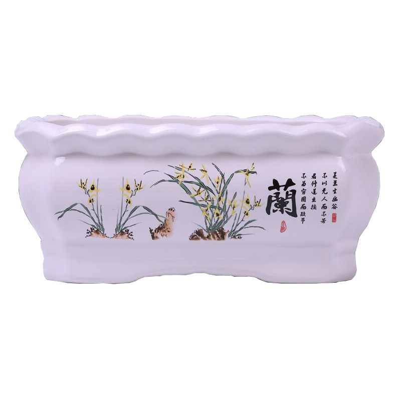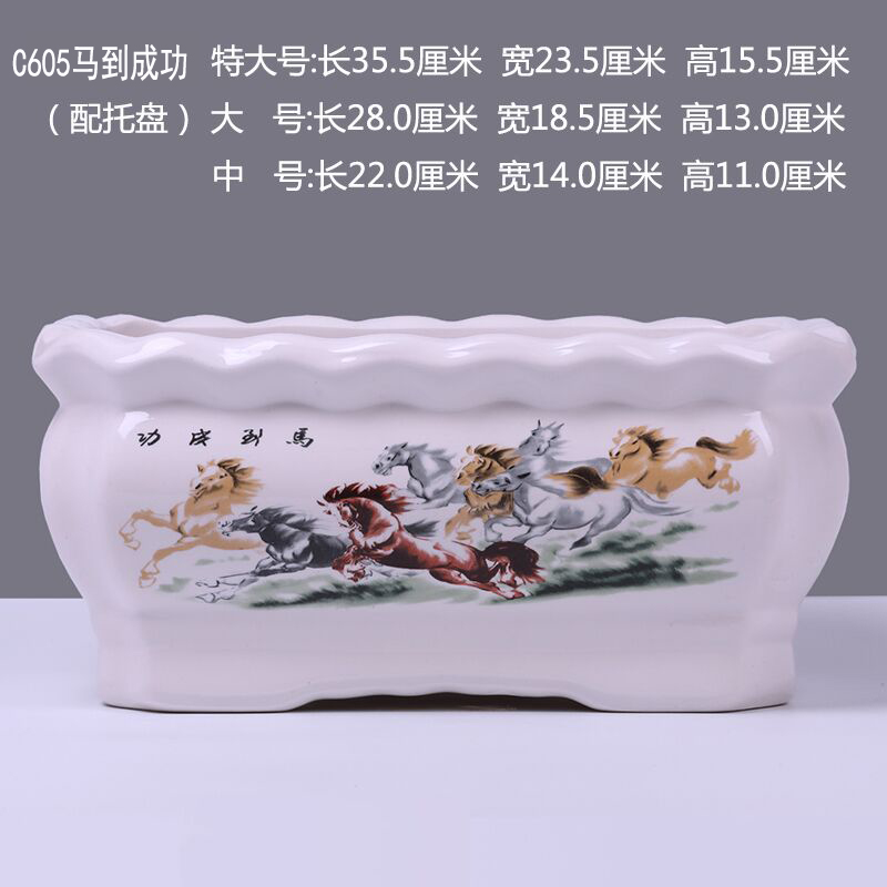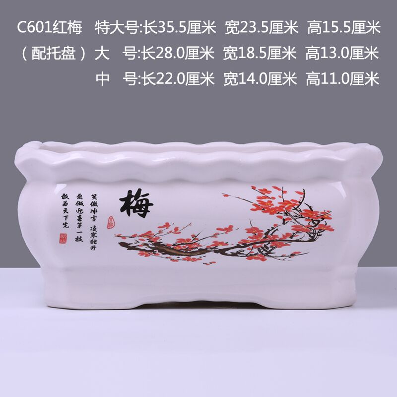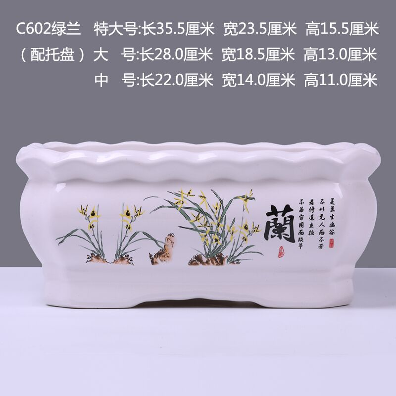 长方形陶瓷花盆 带托盘特大号室内阳台 兰花绿萝多肉盆栽绿植花盆
