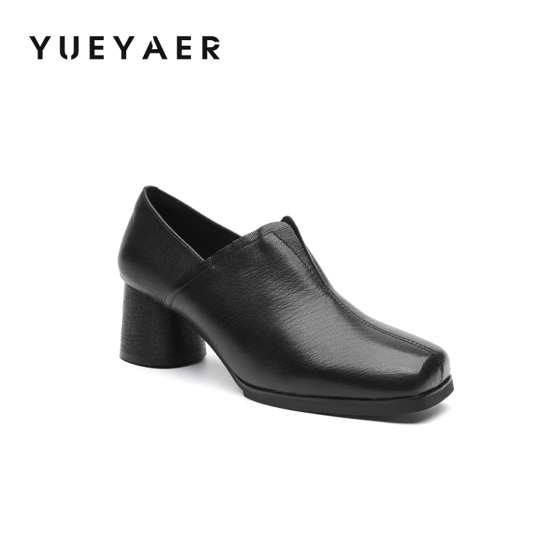 月芽儿2025新款时尚百搭粗跟深口单鞋女高跟鞋一脚蹬通勤工作鞋女