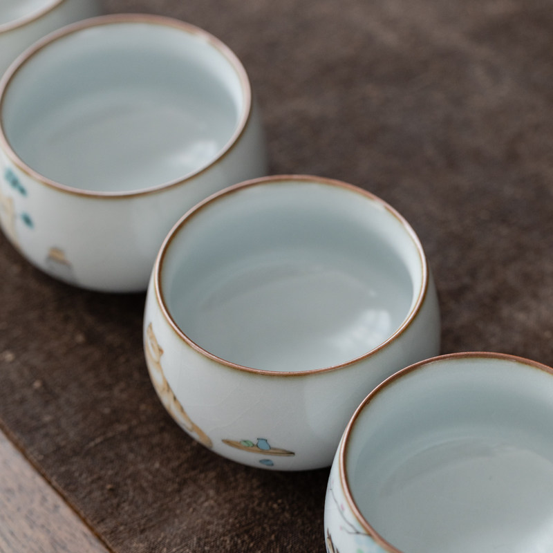一品仟堂汝窑可爱猫罗汉主人杯个人杯陶瓷开片汝瓷茶杯家用主人杯