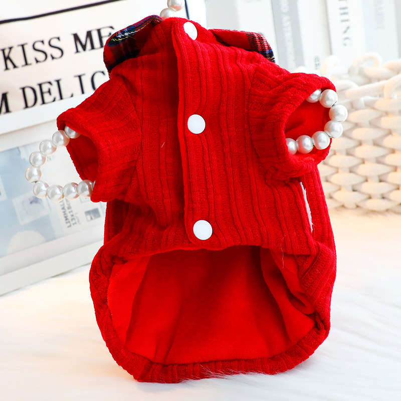 狗狗衣服秋冬装厚款猫公主棉衣红色学院假两件小型犬泰迪宠物6856