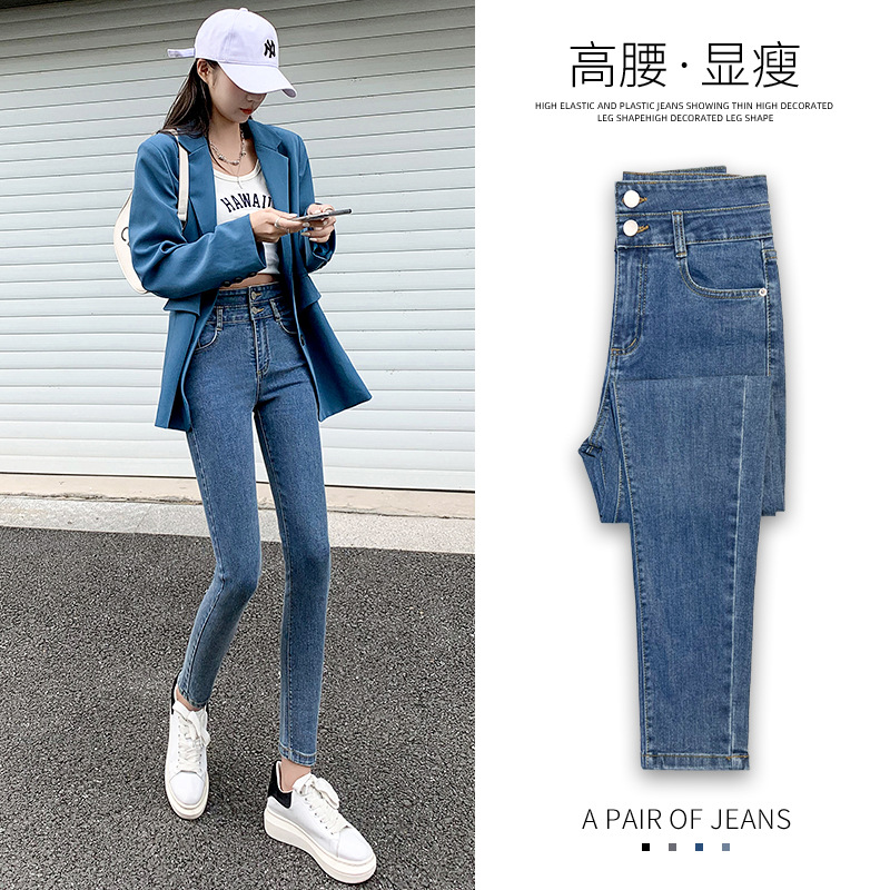 修身2025腰显春秋季高小个子牛仔裤瘦裤子新款小脚铅笔紧身蓝色女