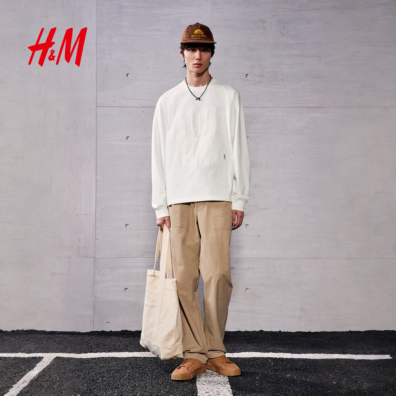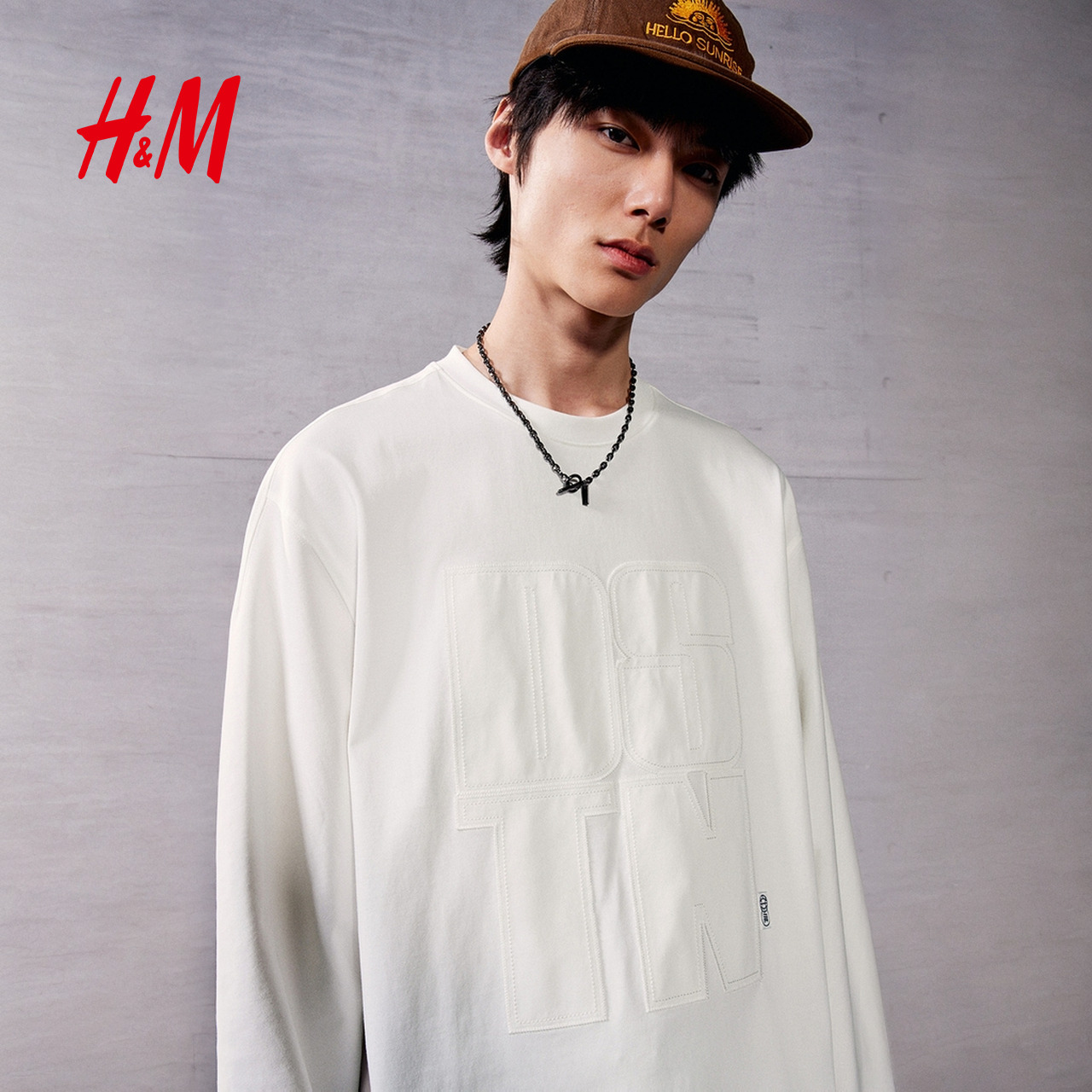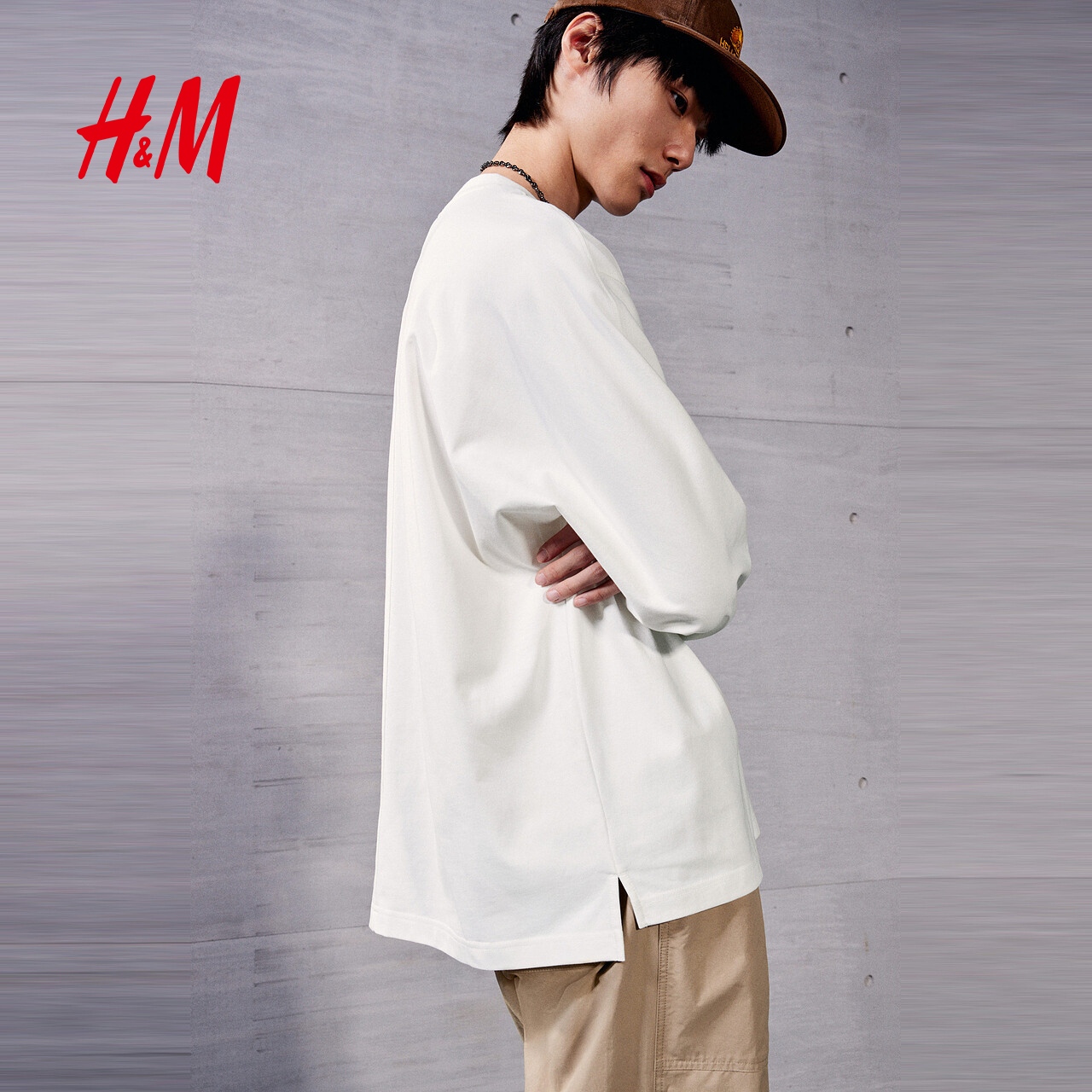 HM男装女装T恤2025秋季新款时尚休闲宽松重磅长袖针织上衣1271801