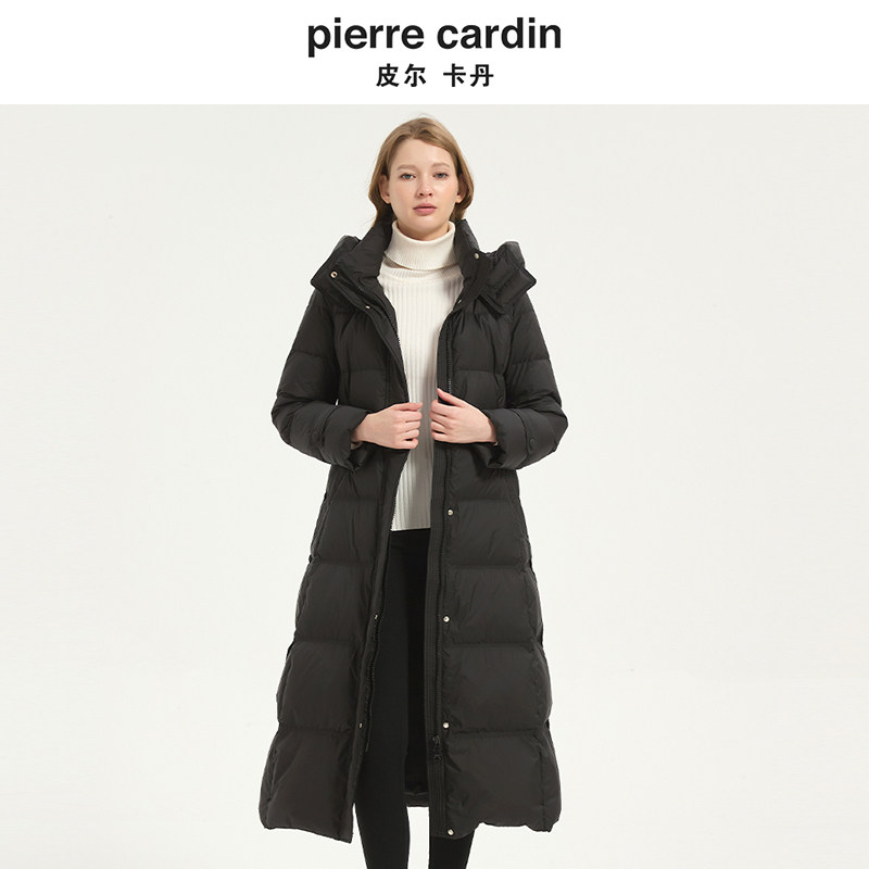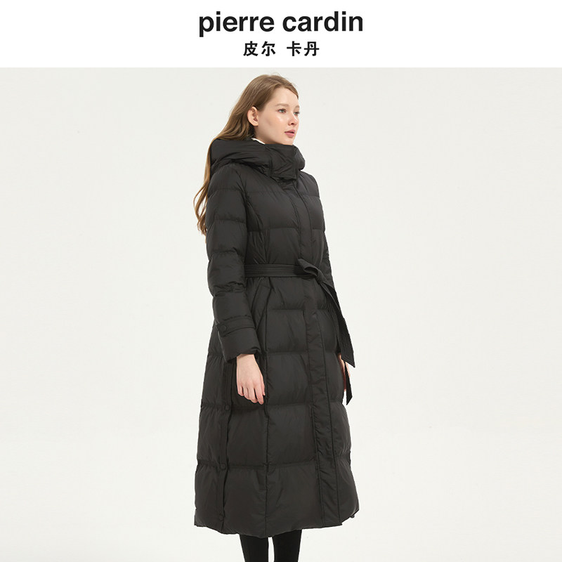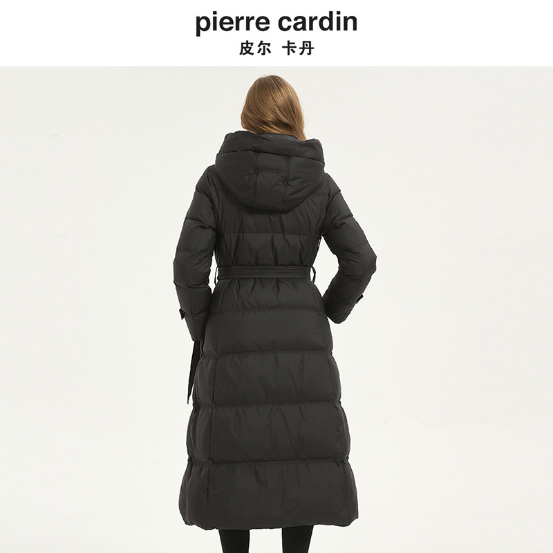 皮尔卡丹女装冬季新款中长款系带收腰连帽女士羽绒服CD54YL030B0