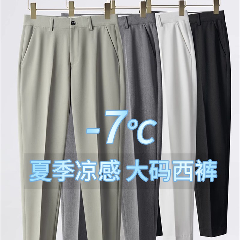 夏季垂感大码西裤男加肥加大西装休闲直筒薄款透气长裤九分裤