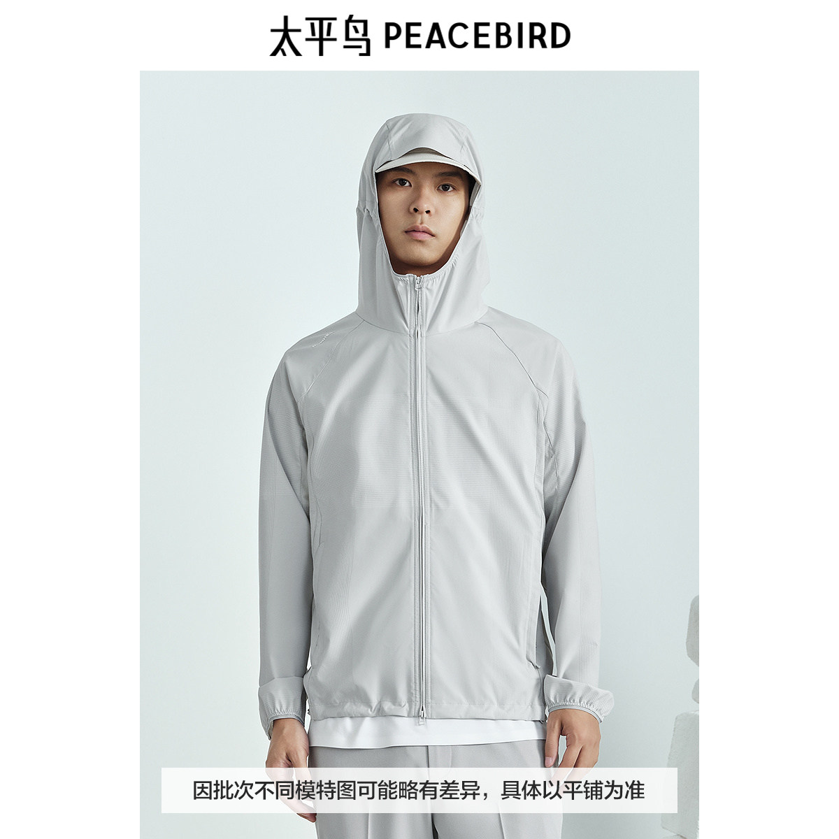 【太平鸟自在轻锋衣】太平鸟男装纯色字母印花连帽夹克B2BCF2A04^