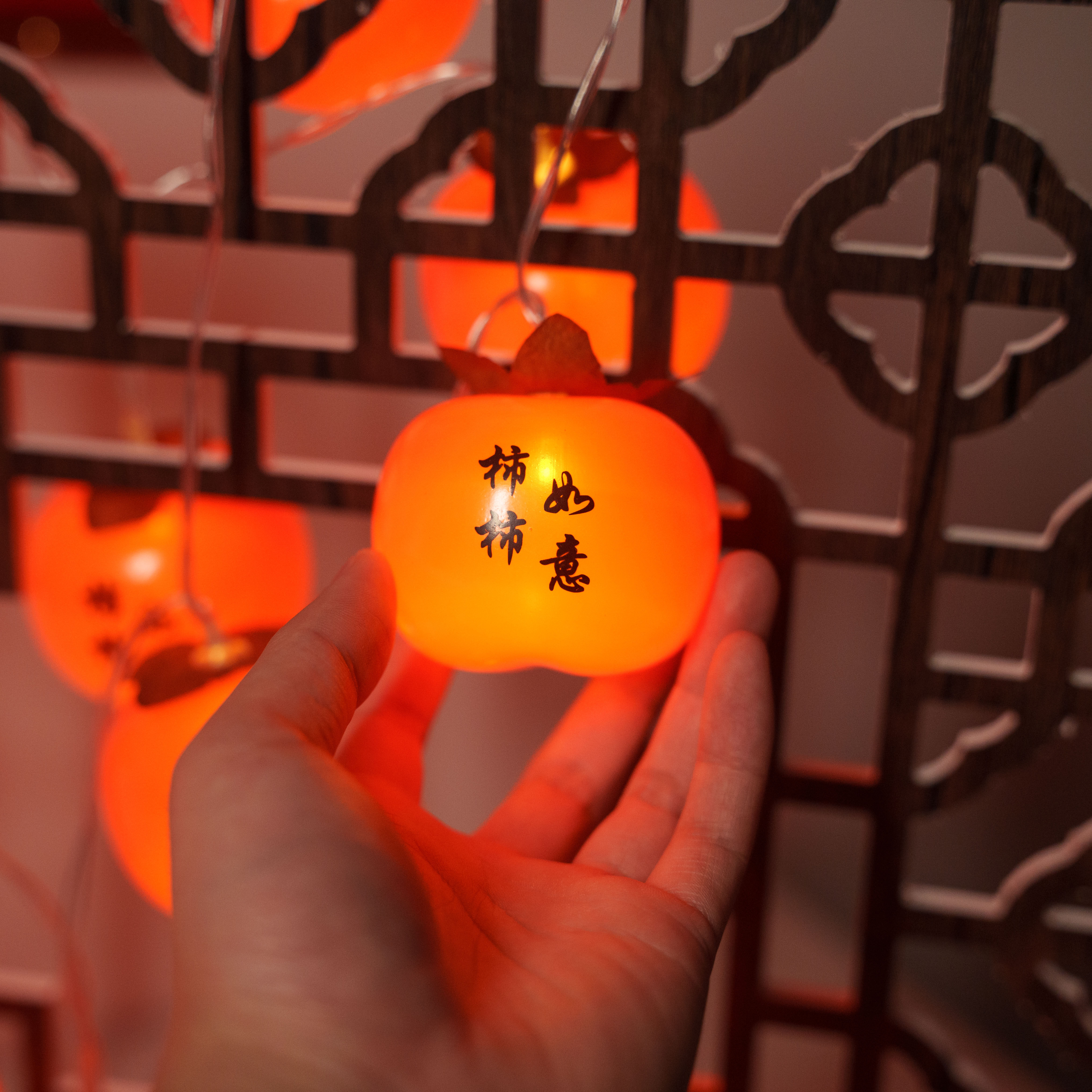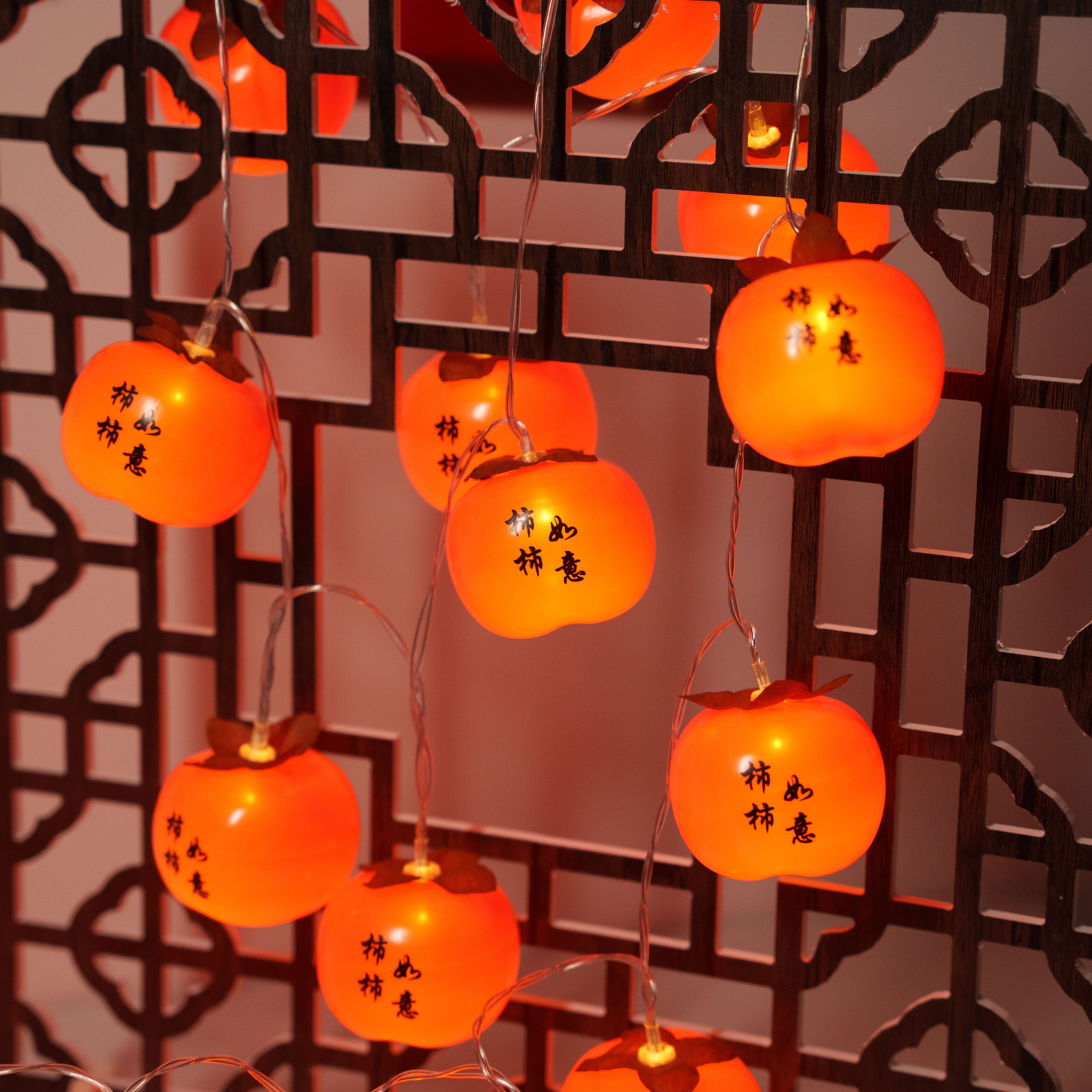 彩灯新年过年装饰灯氛围灯太阳能柿子串灯led闪灯农村院子气氛灯