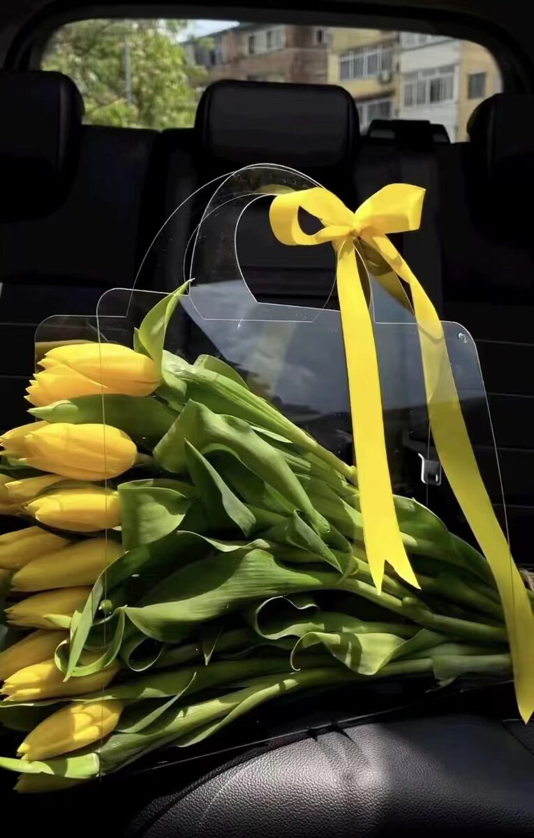 网红情人节透明鲜花手提袋七夕花束包装简约花艺礼盒高透花卉礼物