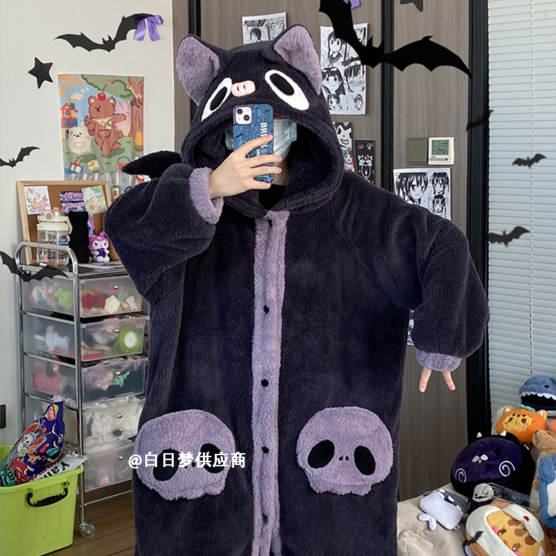 万圣节搞怪小蝙蝠睡袍女秋冬
