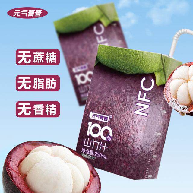 【新鲜10盒】元气青春100%山竹汁添加NFC天然山竹果蔬汁家庭装250