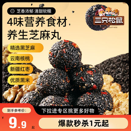 【满99减30】三只松鼠_红枣核桃黑芝麻丸150g高钙高蛋白健康滋补