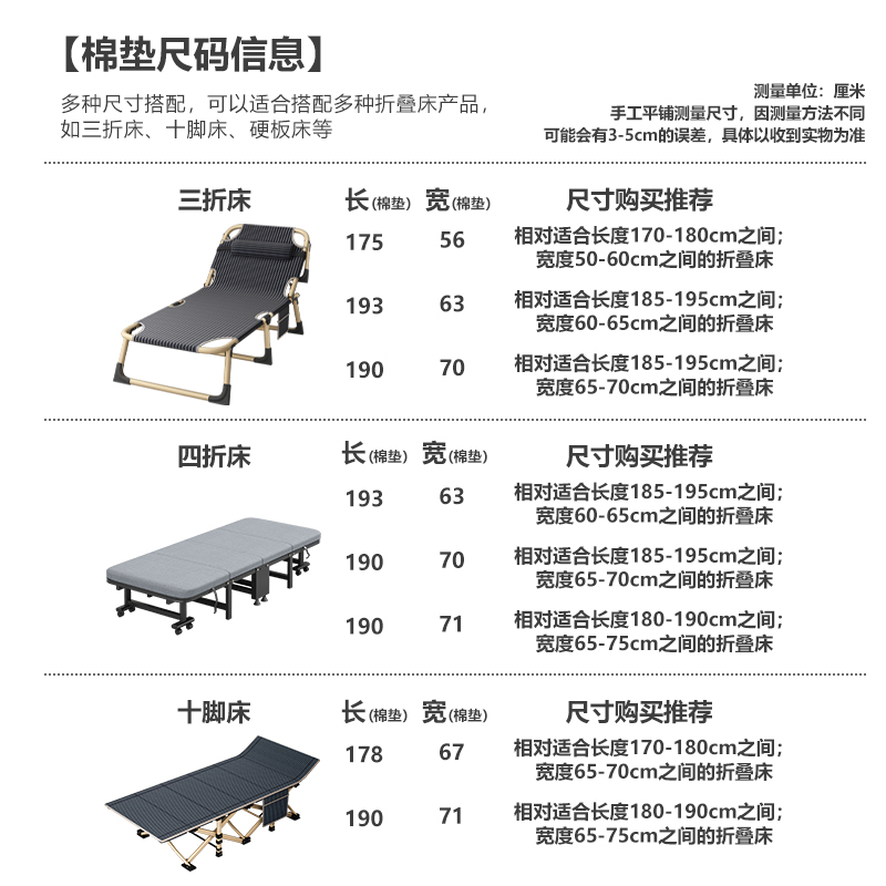 办公室午休床垫子午睡床折叠床配套床垫陪护床行军床棉垫床褥