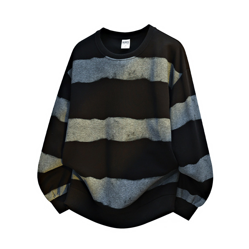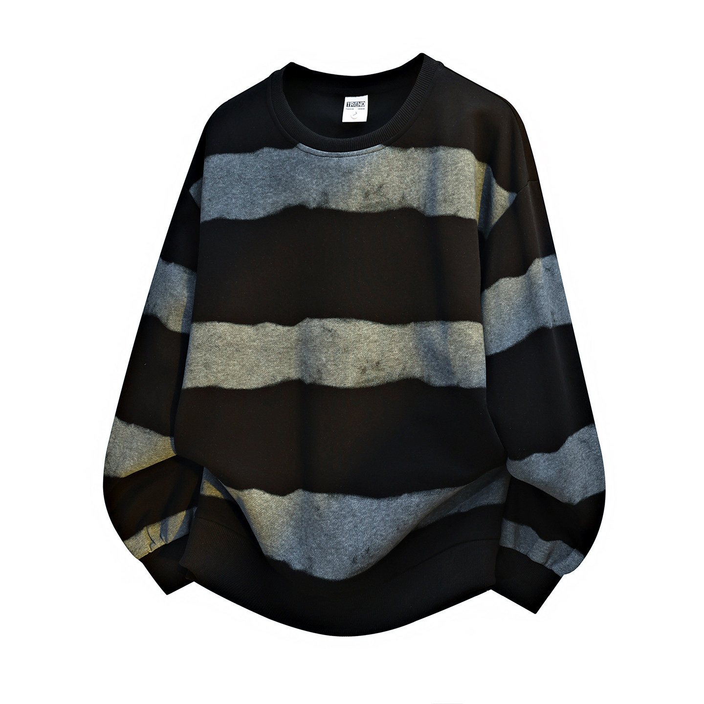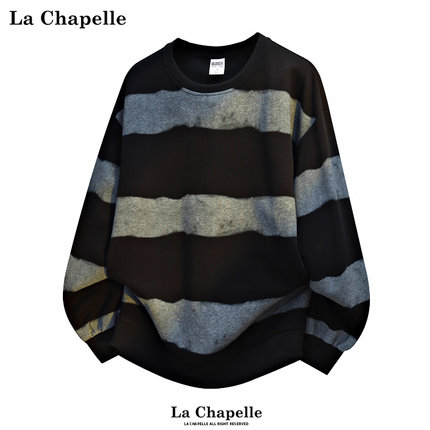 拉夏贝尔加绒条纹卫衣大码冬季男女宽松加厚T恤美式休闲2025新款
