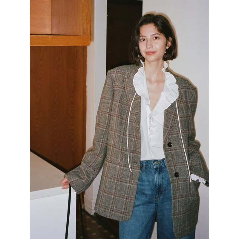 Even Vintage | 进口澳洲羊毛 复古威尔士格纹秋冬西装外套女休闲