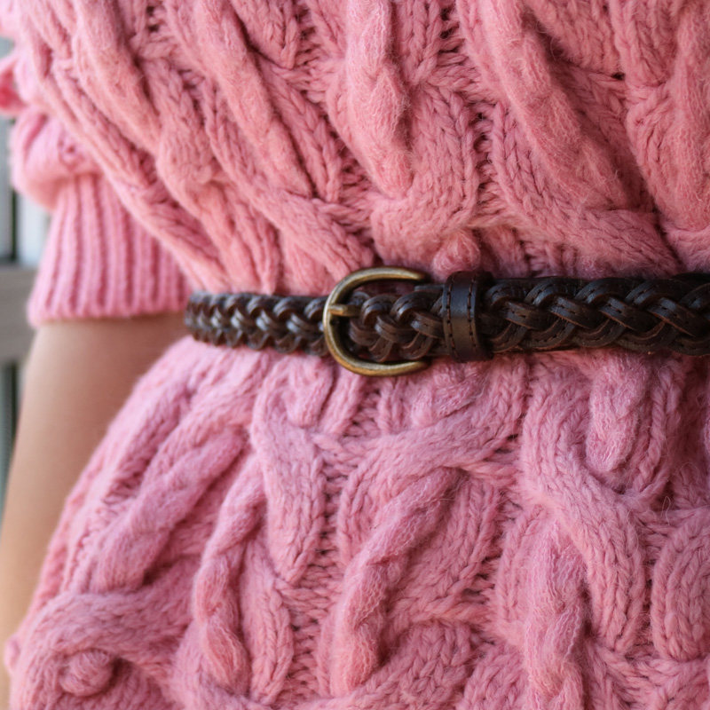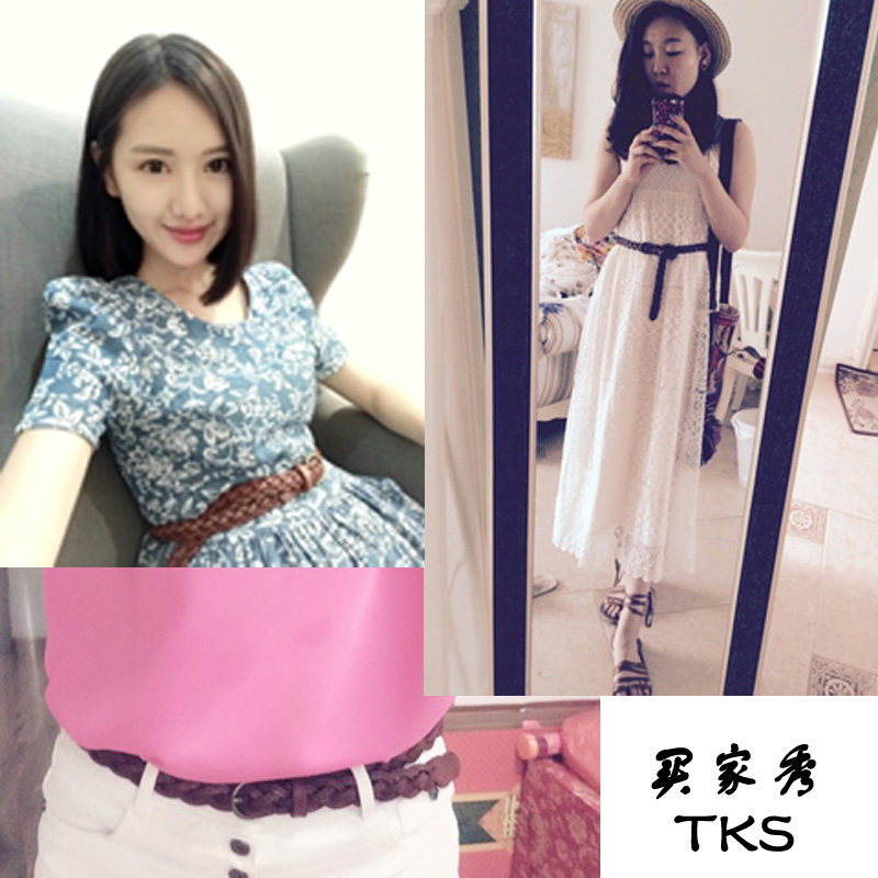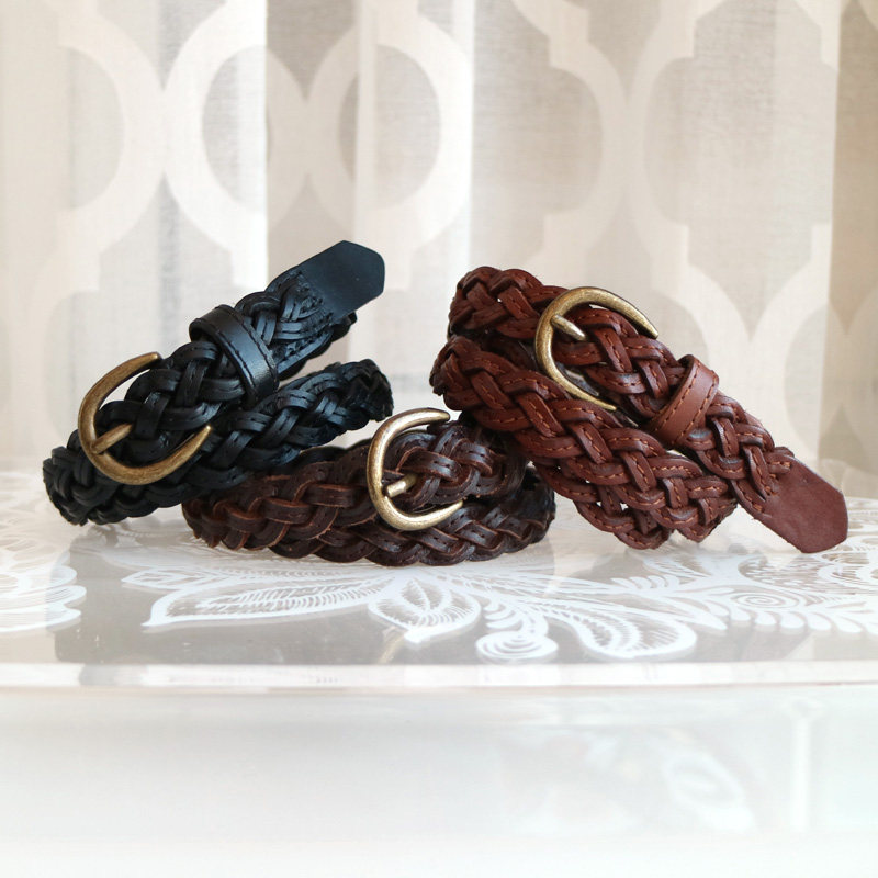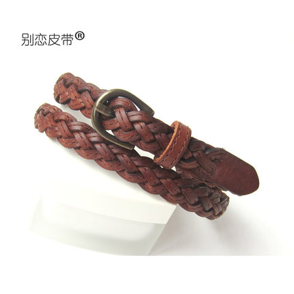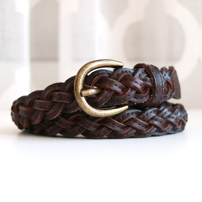 时尚百搭复古纯头层牛皮编织细腰带真皮细皮带女士编制款式棕色