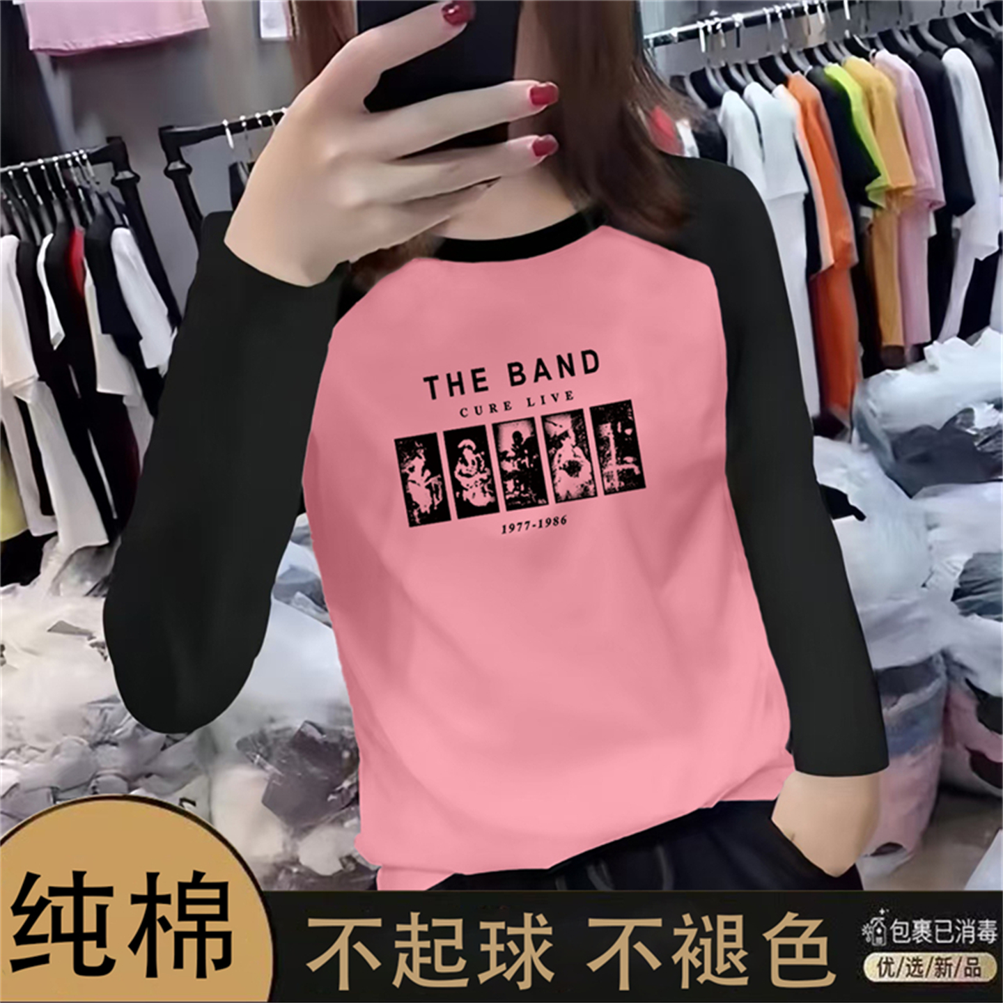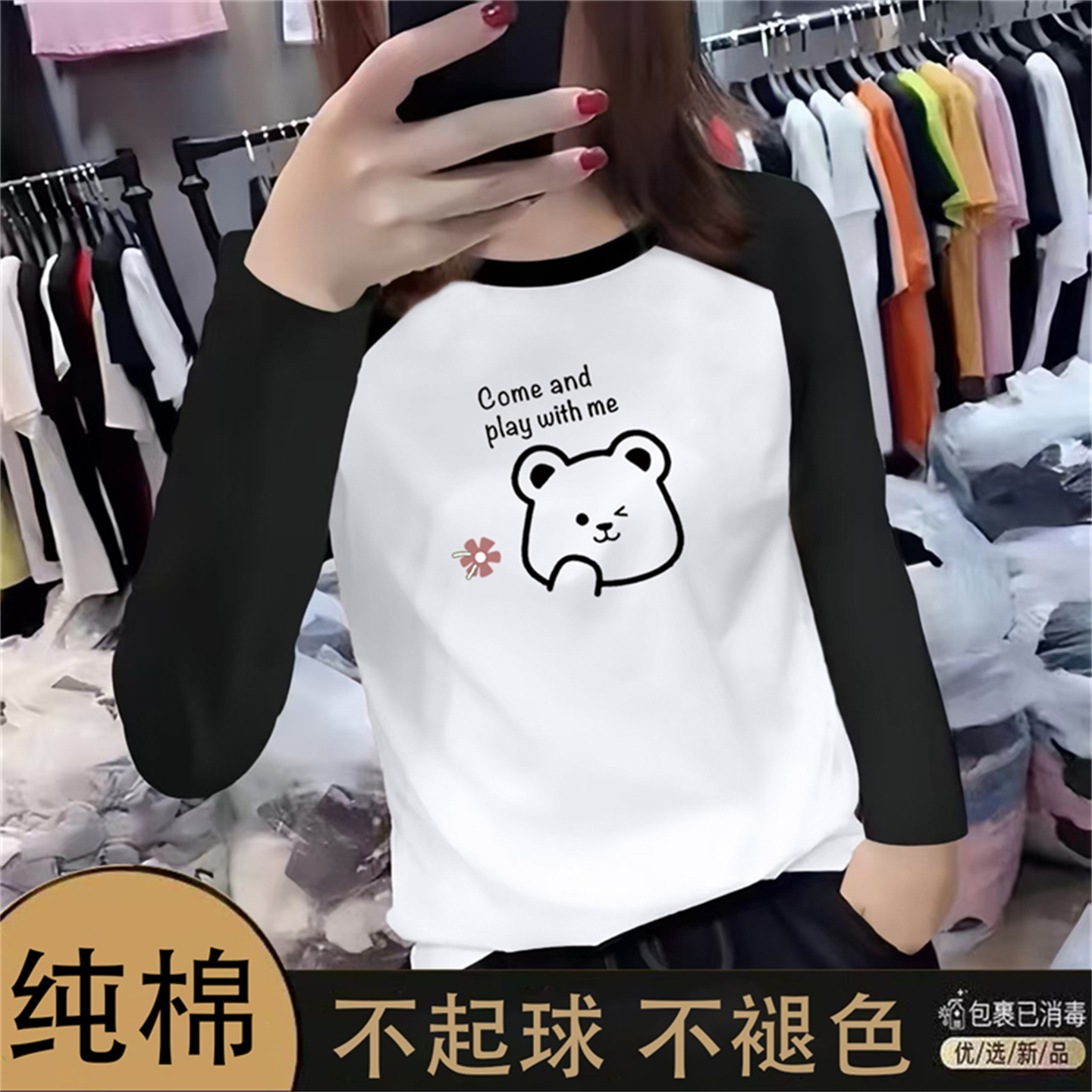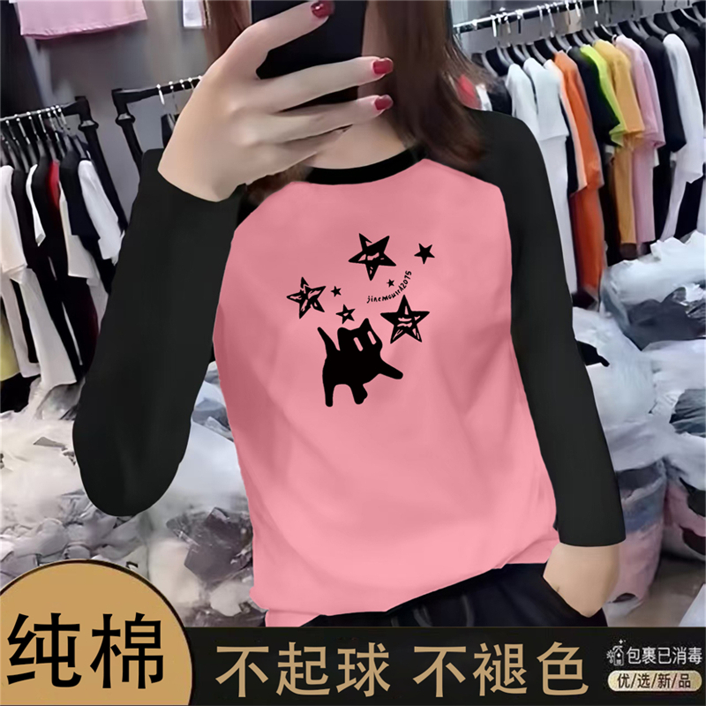 秋新款插肩袖撞色长袖T恤女上衣