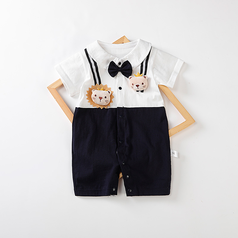 kmi婴幼儿英伦风连体哈衣polo衫男宝宝帅气夏季短绅士爬服