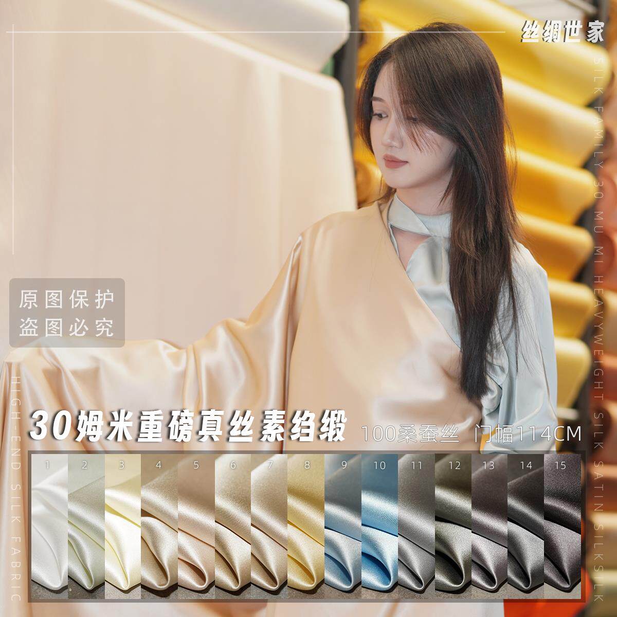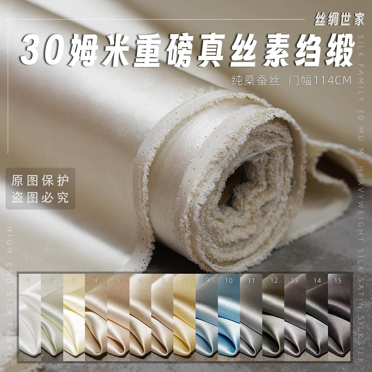 高档30姆米重磅真丝素绉缎布料面料桑蚕丝服装丝绸旗袍里衬米白色