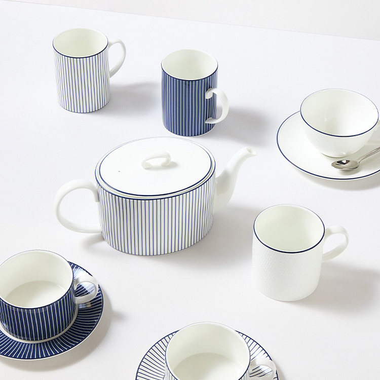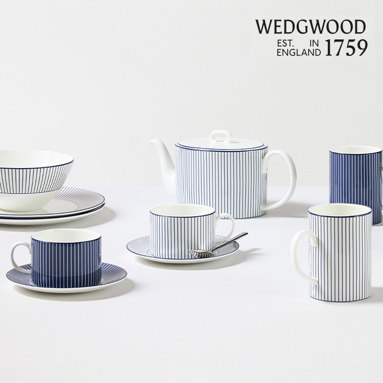 WEDGWOOD威基伍德GIO BLUE蓝调几何马克杯骨瓷咖啡杯碟茶壶礼盒装