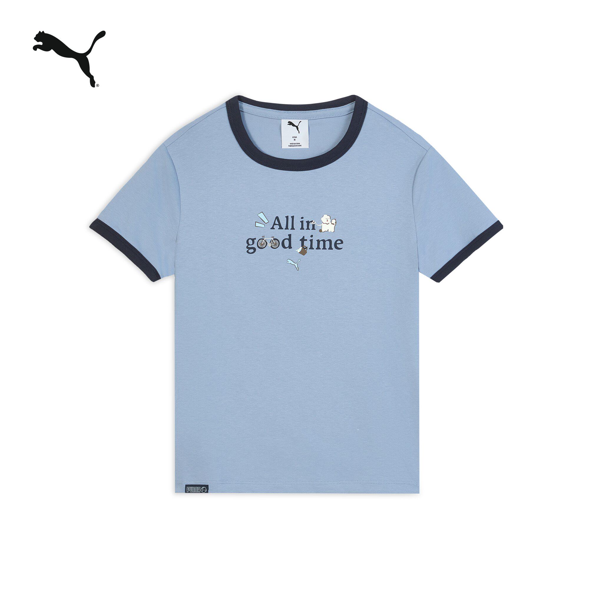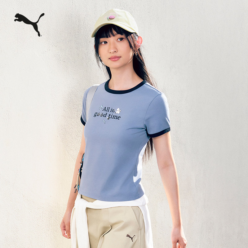 凉感休闲正肩修身短袖T恤女PUMA彪马彩色圆领印花运动上衣634798