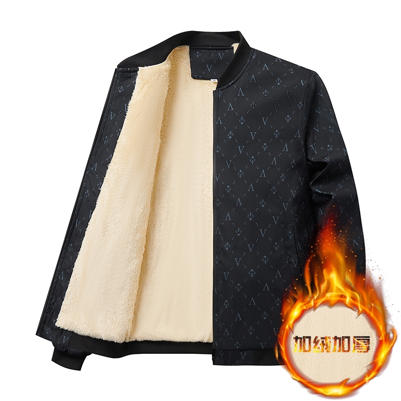 秋冬季加绒加厚款男士外套青年修身百搭保暖外套休闲潮流棒球服棉