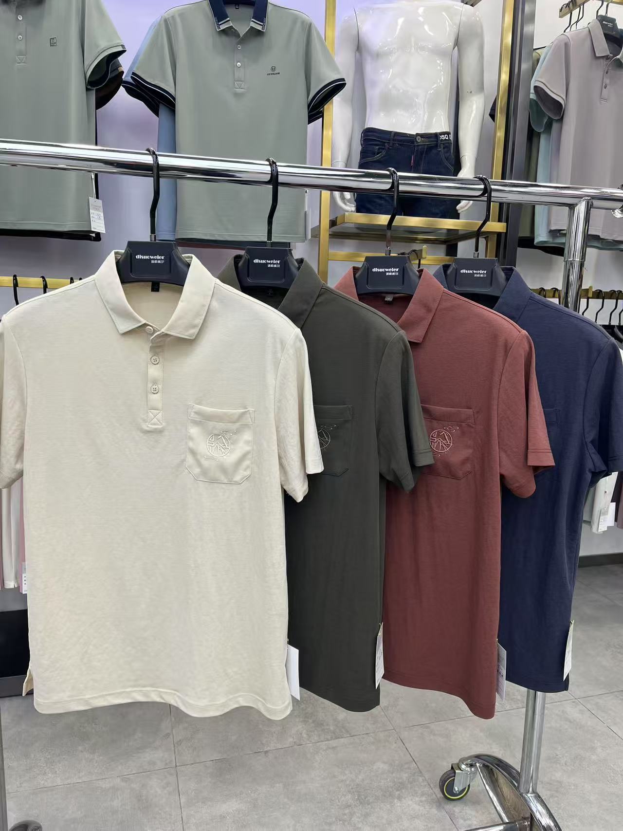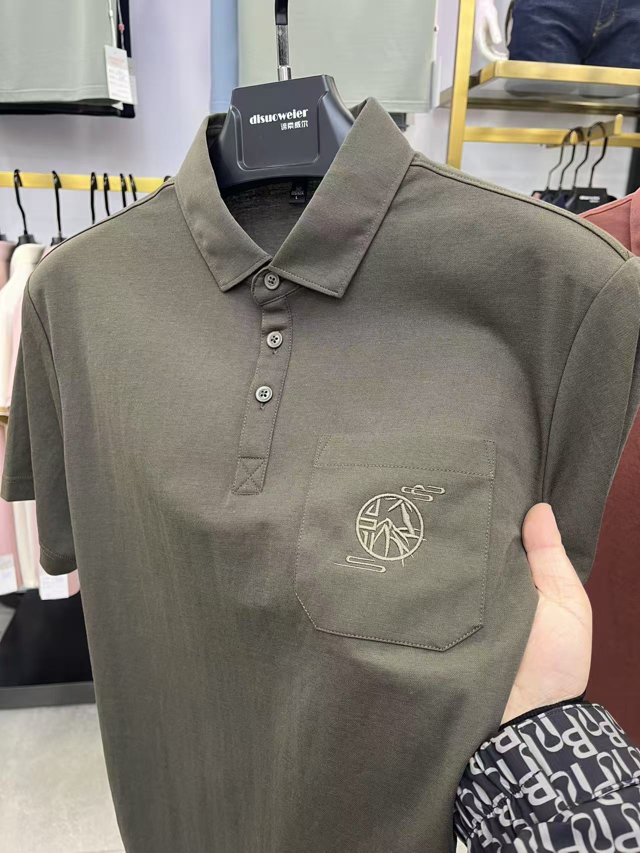 25年夏季新款棉麻国风刺绣有口袋富贵竹Polo衫短袖男士中式体恤潮