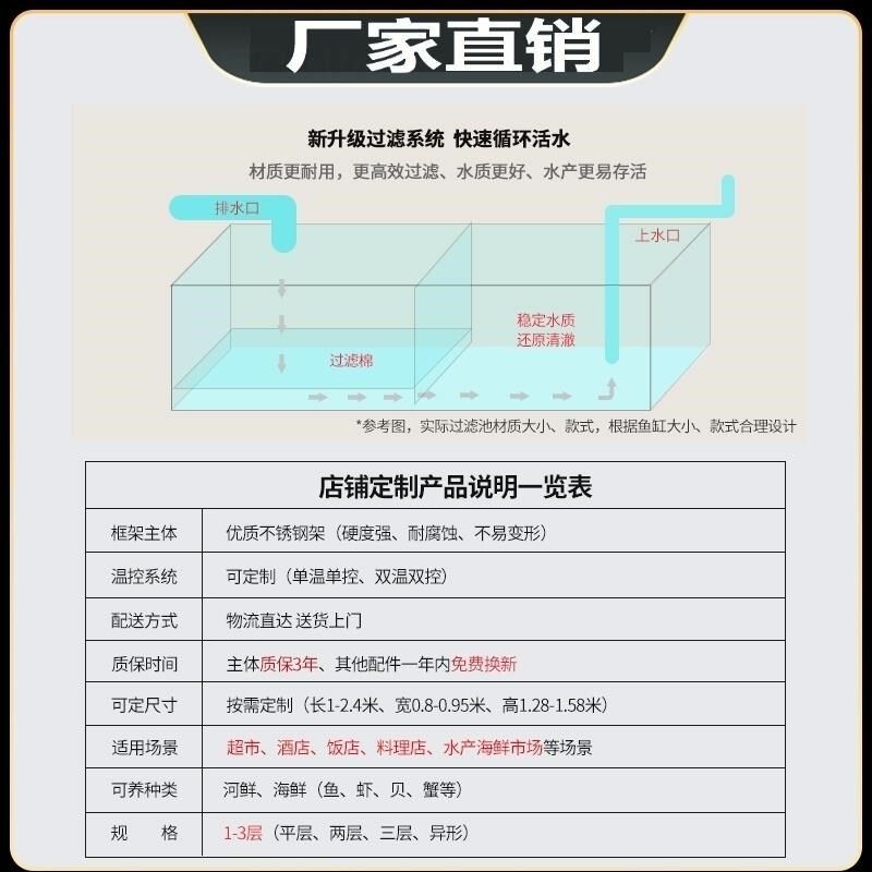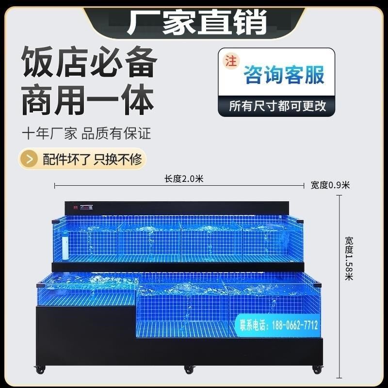 海鲜池饭店海鲜鱼缸商用移动水产海鲜店贝类池制S冷一体超市海鲜