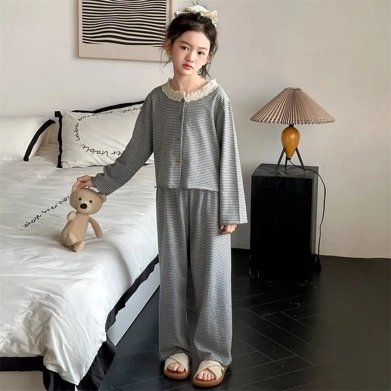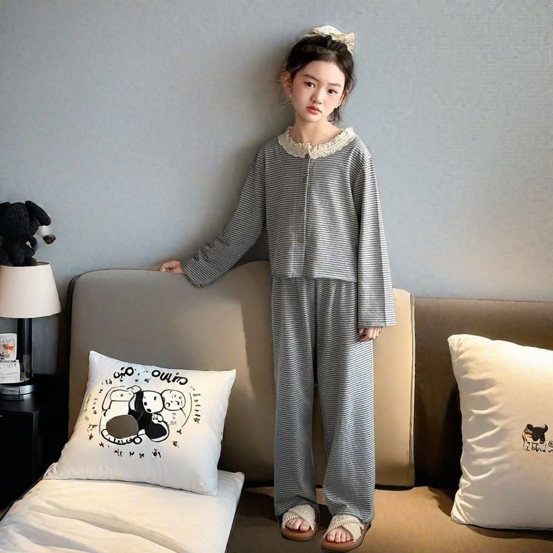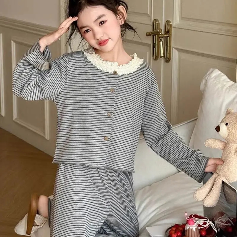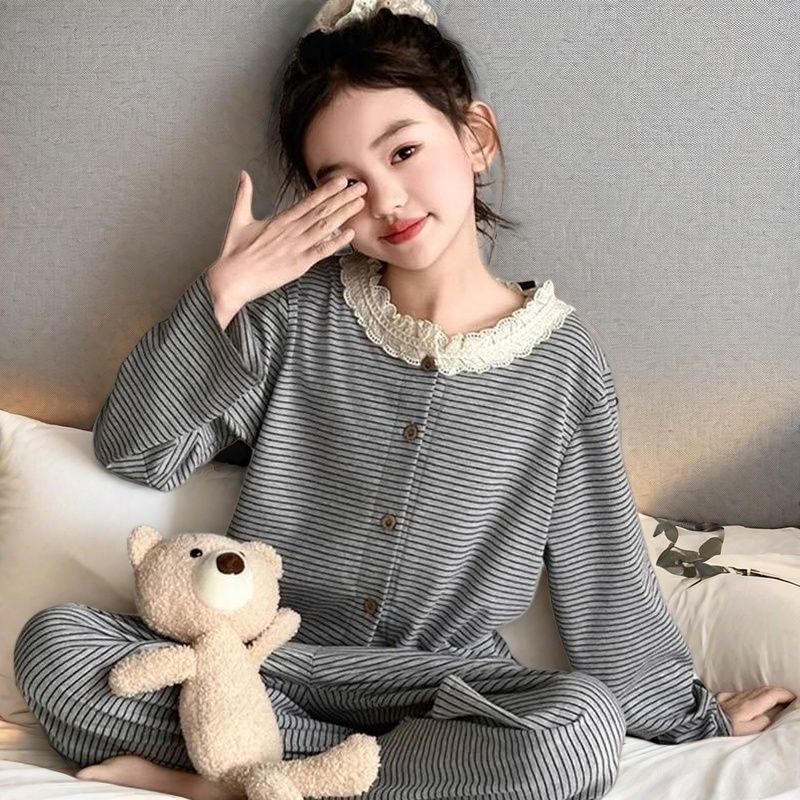 儿童睡衣套装春秋款新款开衫女孩家居服套装宽松外穿中大童空调服