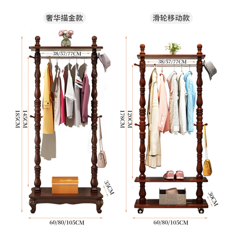 双杆衣架落地卧室网红欧式立式家用挂衣架客厅门厅实木衣帽架落地