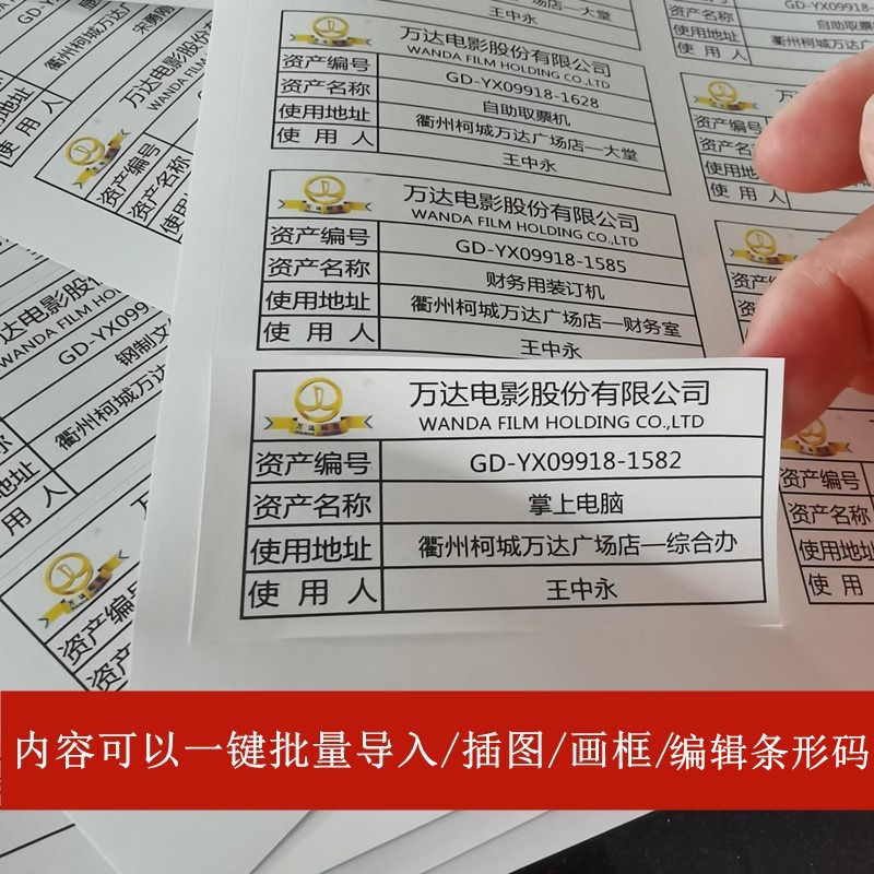 汉唐固定资产标签贴彩色a4不干胶标签打印纸防水撕不烂定制印刷公司低值易耗品标识卡白色激光自粘性标贴纸