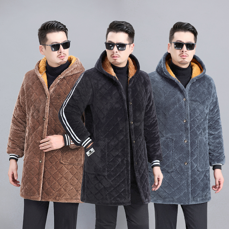 长款棉衣男加绒加厚翻大褂绒罩衣
