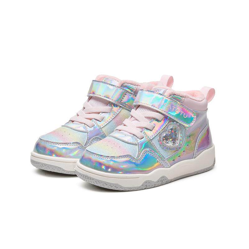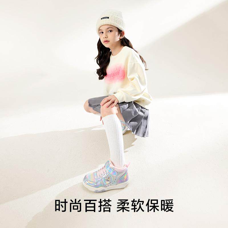 卡特兔女童板鞋高帮鞋2024秋冬新款软底防滑加绒保暖女宝二棉鞋