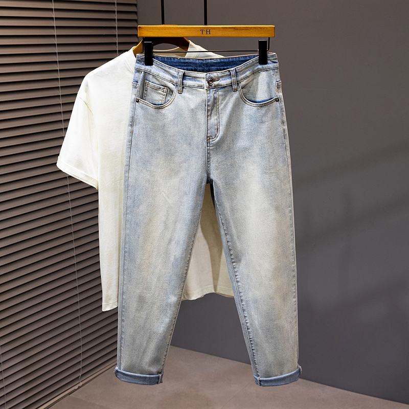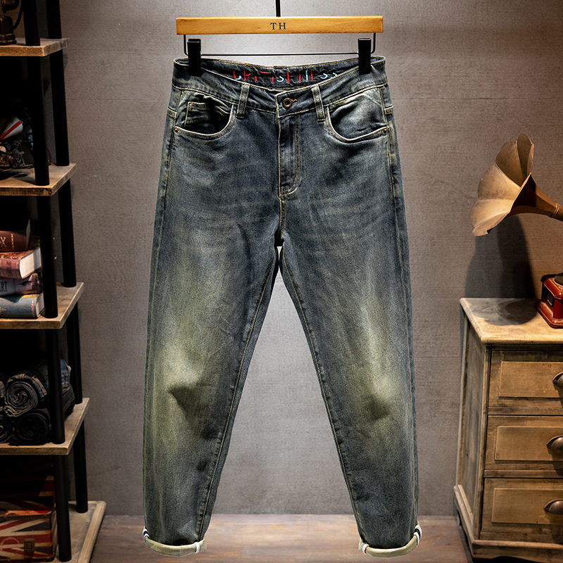 秋冬美式休闲复古加绒牛仔裤男弹力潮牌大码宽松黄泥染水洗长裤子