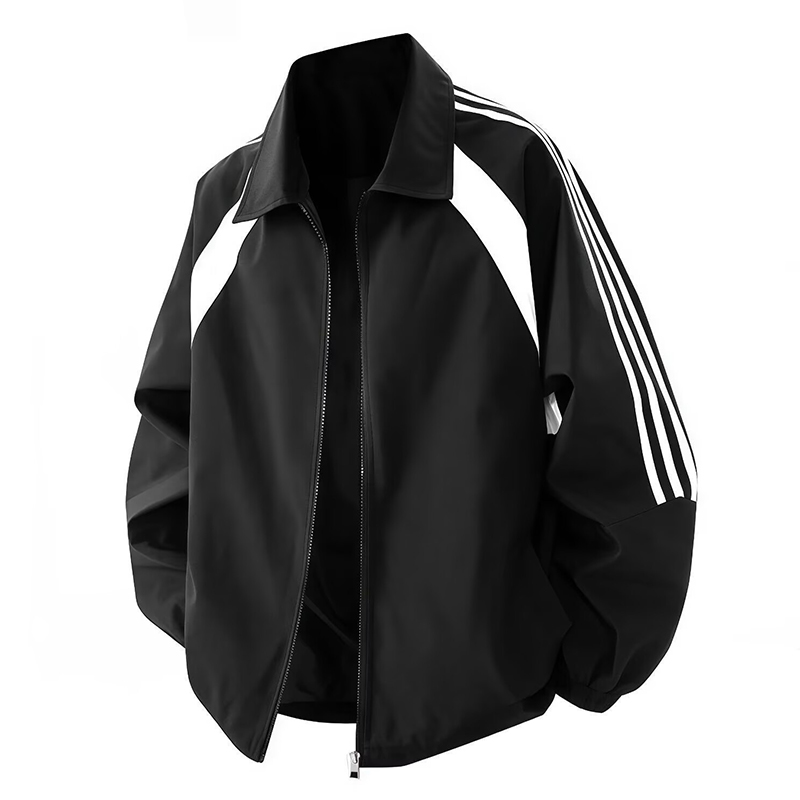 2025春秋季新款翻领夹克男女条纹拼接时尚褂子青少年学生休闲外套