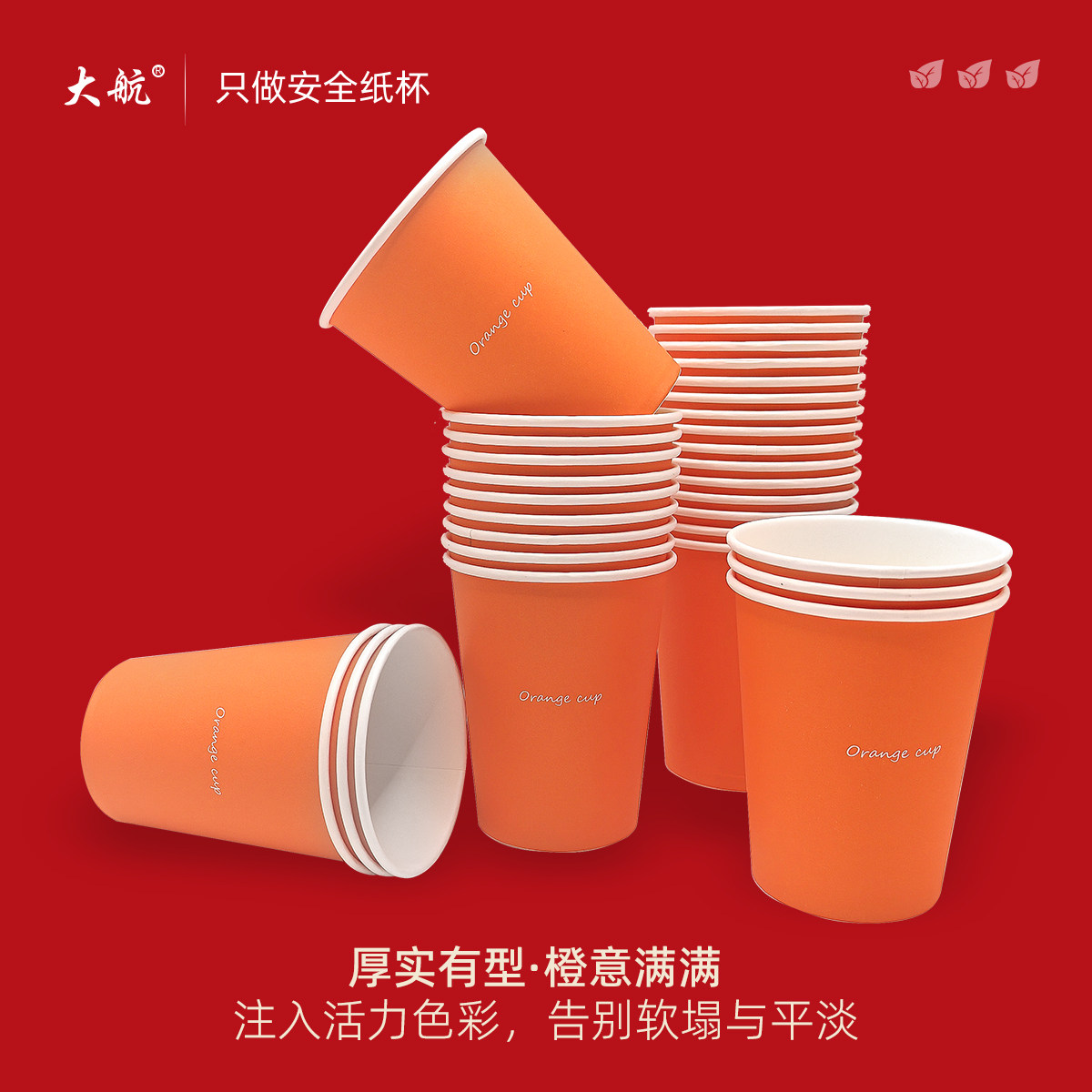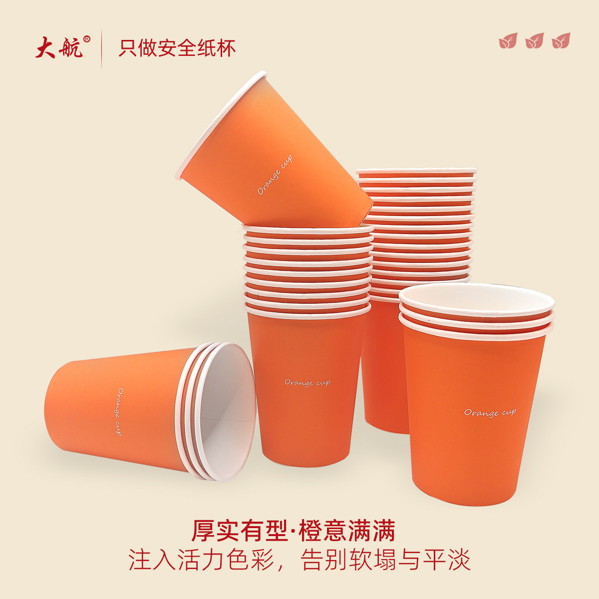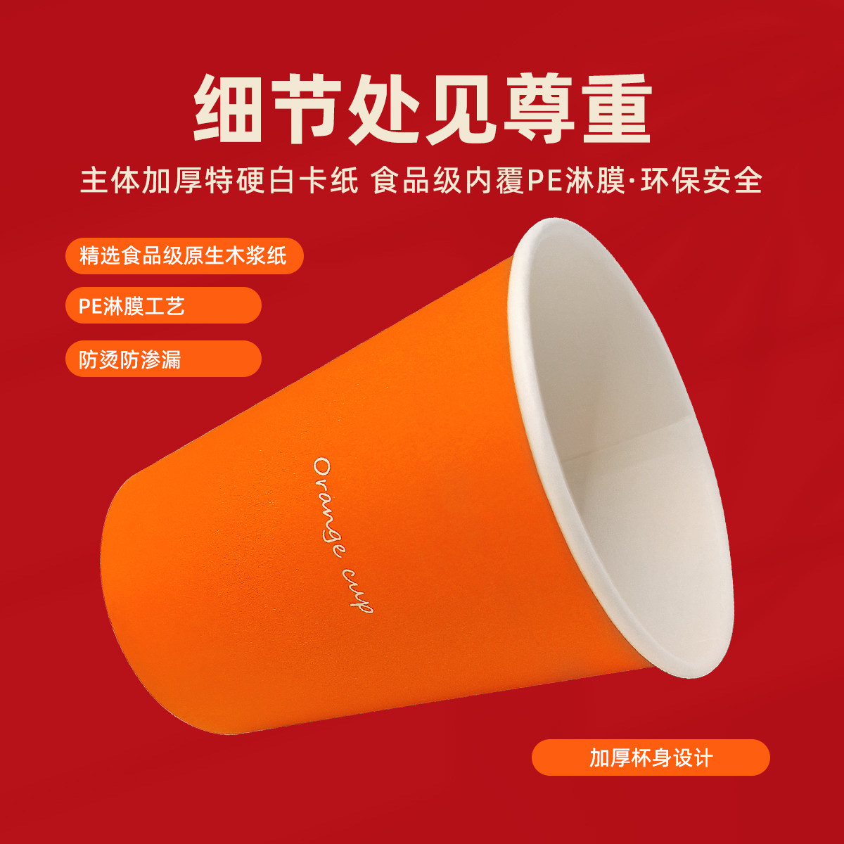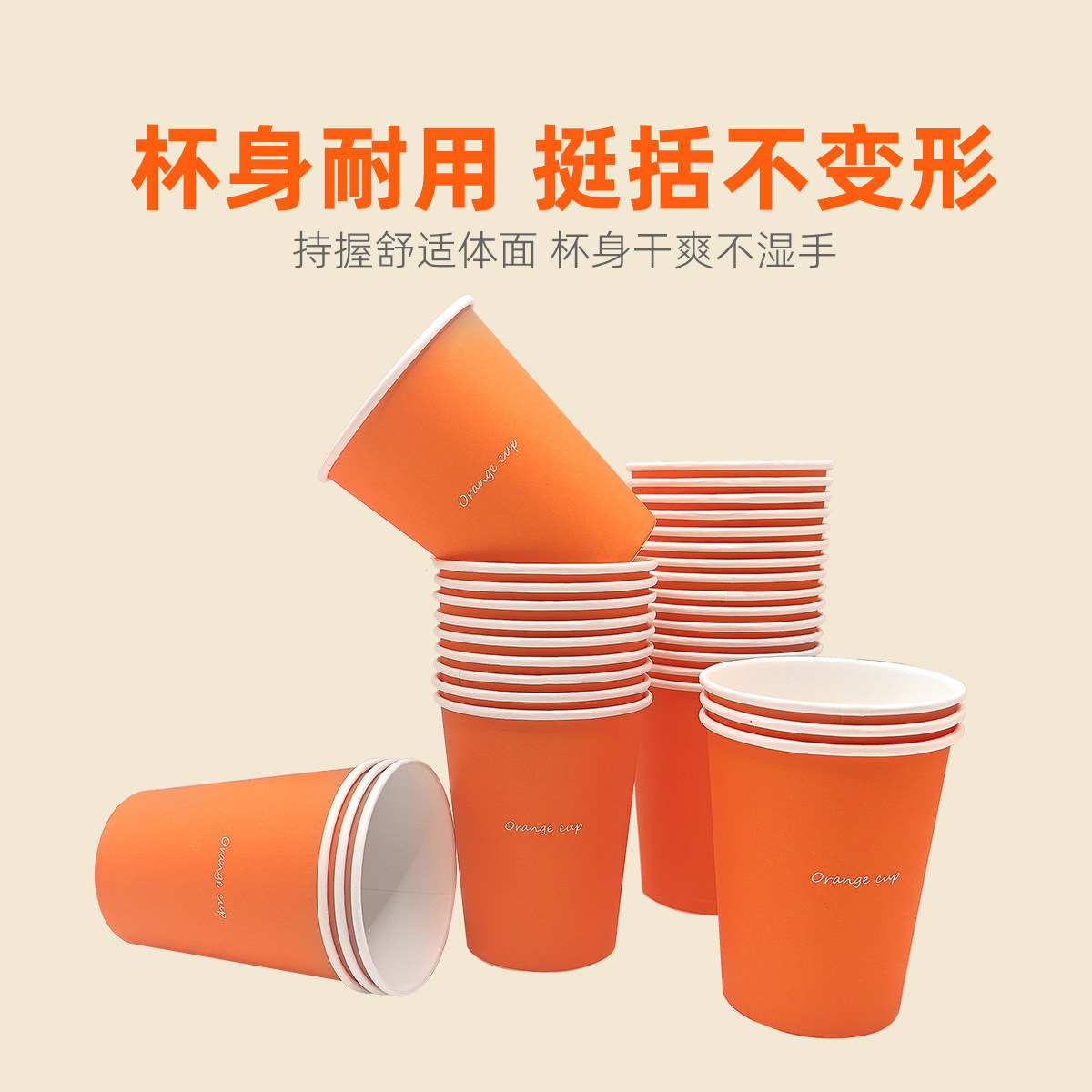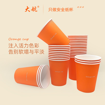 270ml一次性朱膘橙色包装纸杯家用商用加厚杯子过年用热饮纸杯