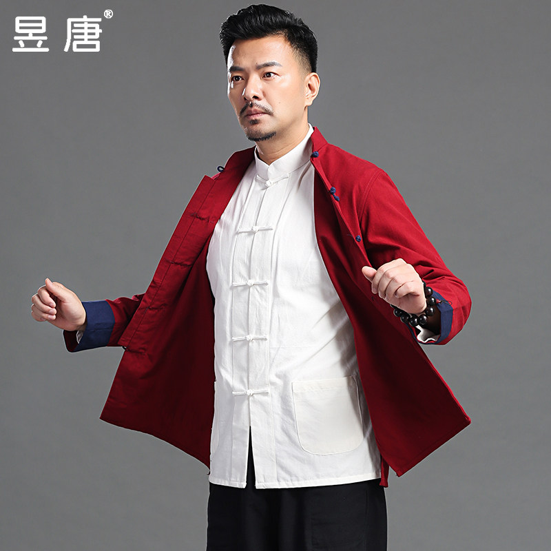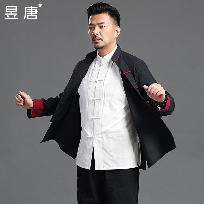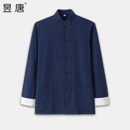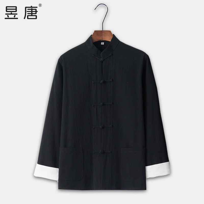 民族风男装春秋新款父亲唐装外套纯棉中式立领盘扣茶服中老年禅服